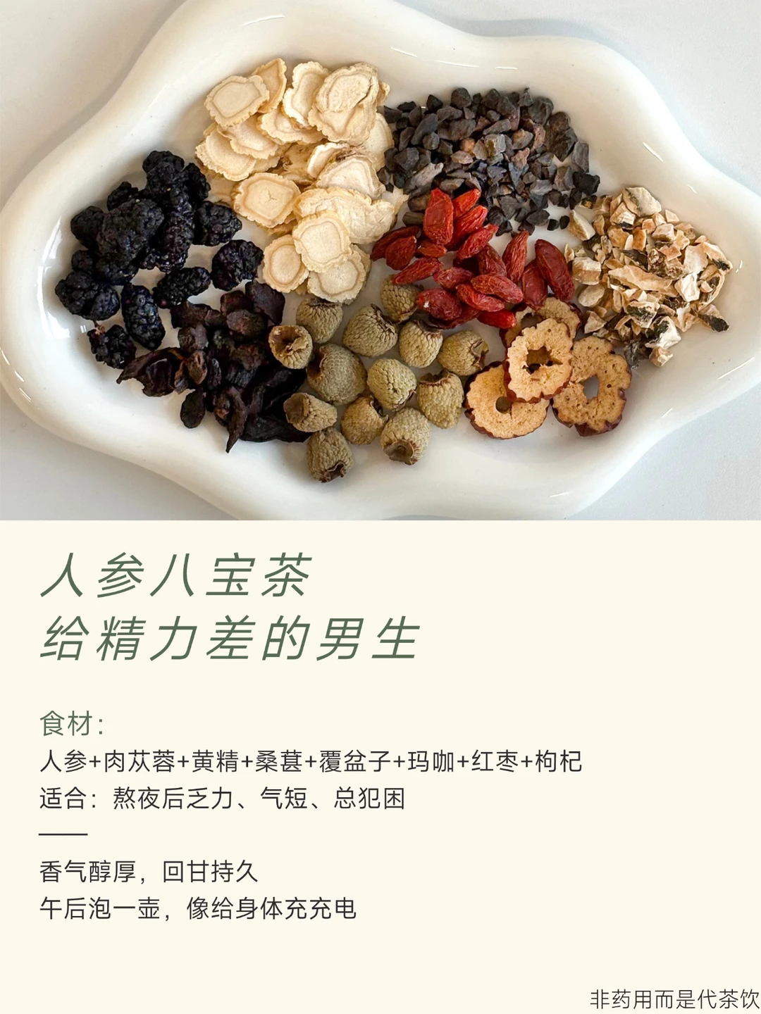 人参+肉苁蓉+黄精+桑葚+覆盆子+玛咖+红枣+枸杞