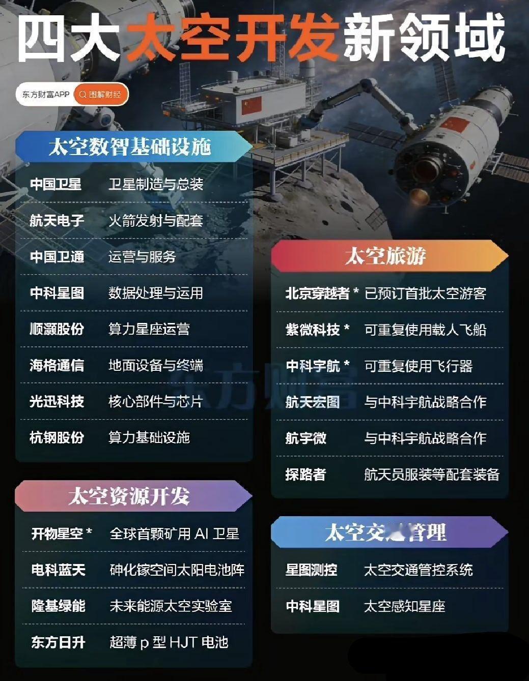 四大太空开发新领域个股: