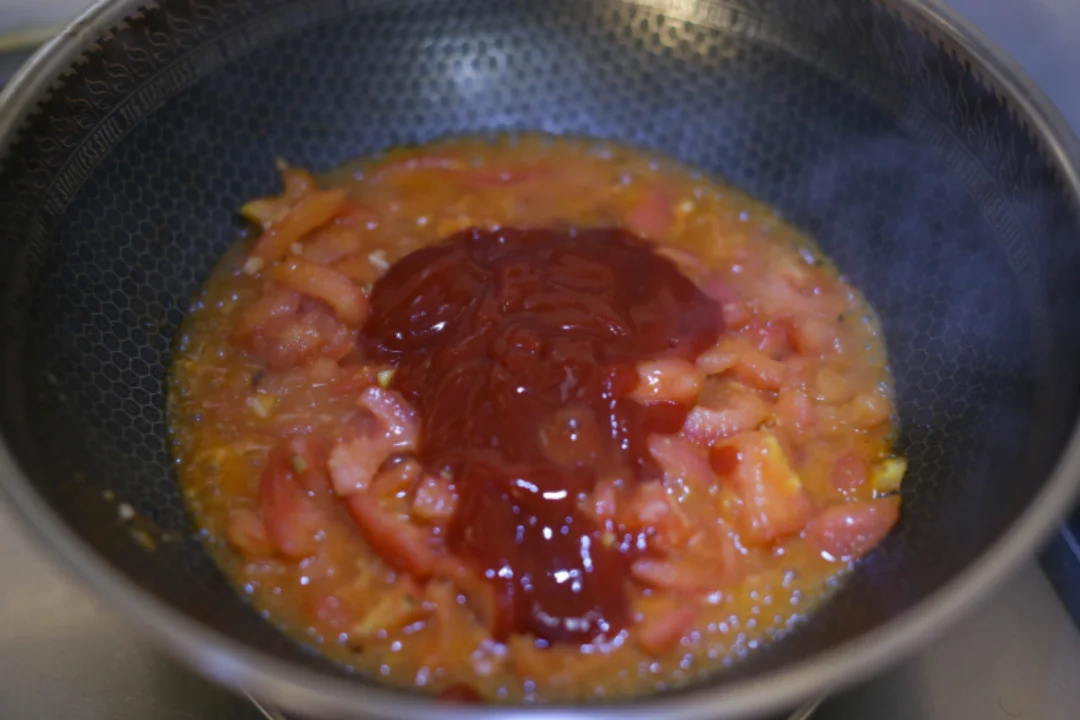披萨酱: 西红柿:2个 蕃茄酱:适量 香草:适量 盐&黑胡椒:适量 披萨酱制作: 1️⃣:西红柿去皮之后,切成小丁备用。 2️⃣:炒锅中加入适量橄榄油,加入一点蒜末炒香,颜色变成微黄色加入西红柿丁,不停翻炒至番茄酱汁变浓稠,加入适量的番茄酱,放入适量香草,食盐和黑胡椒,搅拌均匀让味道融合就可以,晾凉之后就是美味的披萨酱。