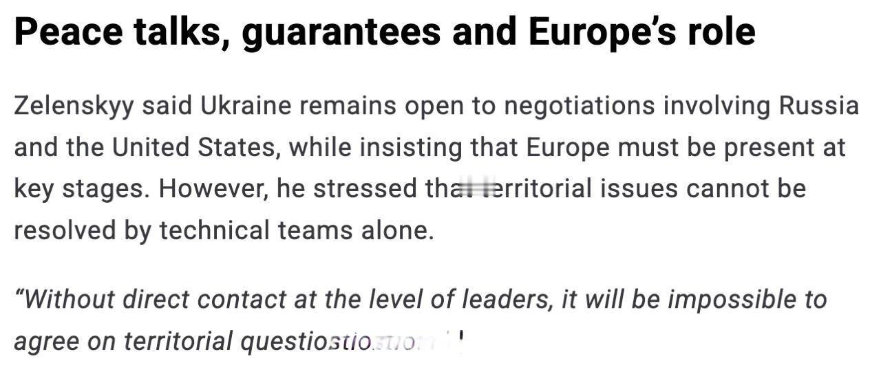泽伦斯基提前表示,预计今天的阿布扎比谈判不会有结果,并表示必须与普京亲自见面才能解决领土问题。 泽连斯基表示,乌克兰境内能源供应危机最严重的地方就是基辅。 乌克兰总统泽连斯基在接受采访时表示,乌克兰加入欧盟的目标日期定为2027年,这是拟议的20点和平计划的一部分。具体日期可能不完全是1月1日。