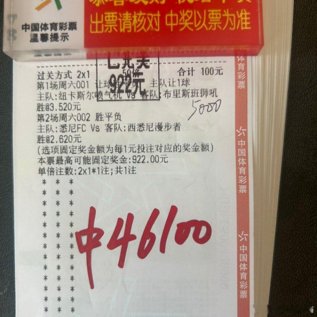 内部大哥澳超双响,46100 到账。重注出奇迹,大哥这波收得舒服!