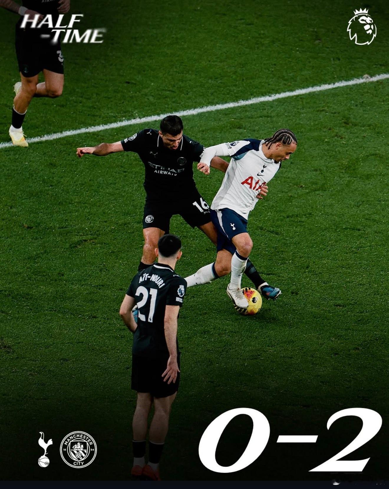 热刺vs曼城热刺自己半场两个失误,曼城上半场 2 比 0 领先。若曼城赢球,和领头羊阿森纳的差距仍然保持在4分。