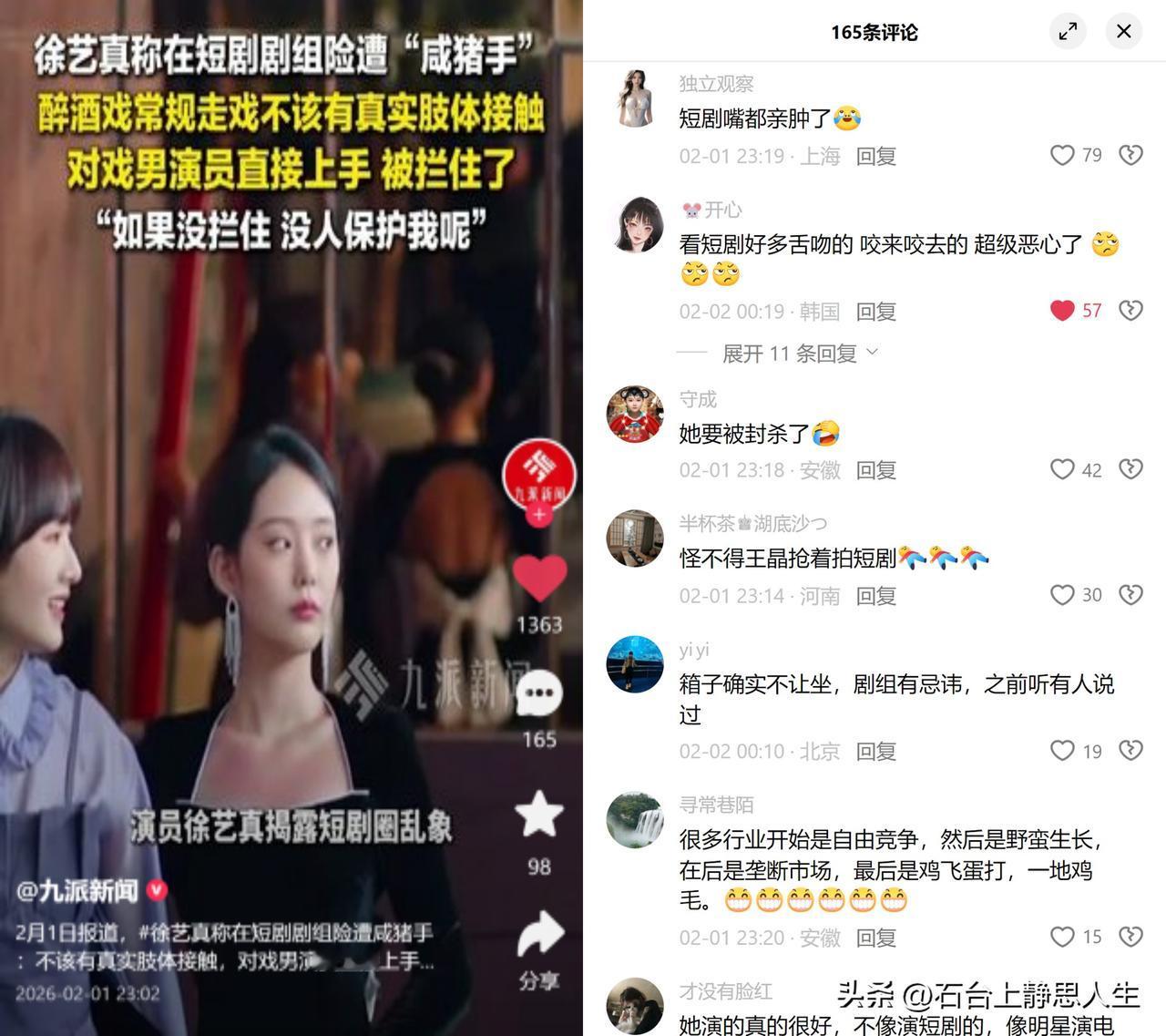 徐艺真爆料的,不止咸猪手。 女演员拍短剧遇咸猪手被及时拦住,转头又因身体不适坐苹果箱遭指责。镜头箱不能坐是护器材,可苹果箱本来就是用来坐踩的,却只禁女性,这事儿看着荒唐,细想全是门道。 这规矩并非剧组瞎编,源头还得往梨园旧规里找,早年戏班说旦角坐衣箱晦气,到了影视圈变味成男可坐女禁坐的性别双标。美其名曰行业传统,实则是把女性当晦气源头的封建糟粕。 更讽刺的是,短剧圈一边靠女性擦边博流量,一边用老规矩压榨女演员:既要她们当变现工具,又用行规堵她们的嘴。有人怕徐艺真被封杀,真正的担忧在于,那些揭开潜规则的人,总会被行业默默消化。 要多少人站出来,才能把这些裹着传统外衣的破规矩,晒在太阳底下?