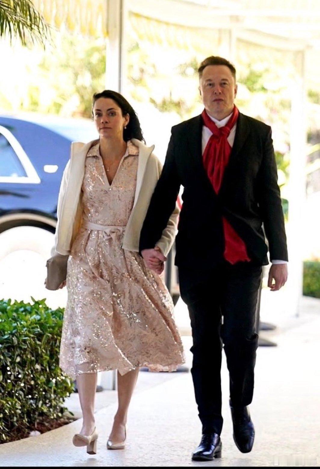 埃隆·马斯克和他的伴侣希冯·齐里斯手牵手抵达海湖庄园参加丹·斯卡维诺的婚礼 看样子是正宫人选。