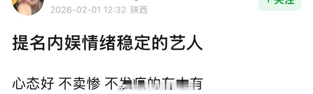 提名内娱情绪稳定的艺人心态好 不卖惨 不发疯的