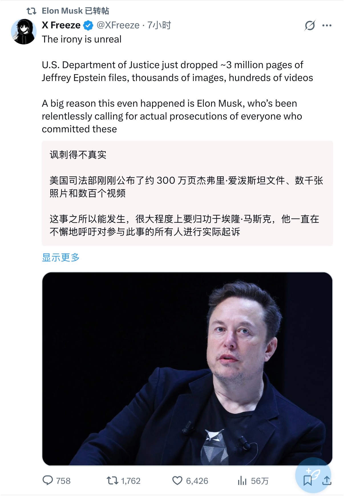 🔻网友分享:马斯克现在充斥着“嘻嘻还好我没去你们都活该”的雄小鬼感和“嘻嘻让你们不带我玩遭报应了吧”的怨妇感。。。爱泼斯坦案文件爱泼斯坦 吃人热点现场海外新鲜事