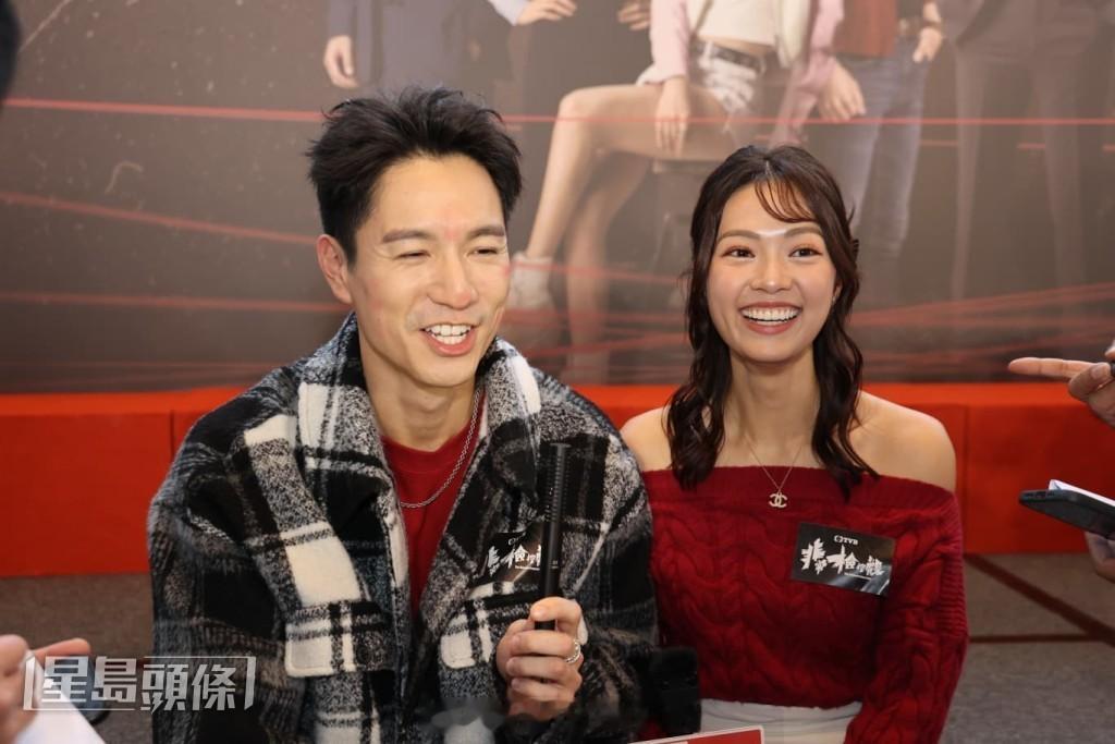 游嘉欣不介意被指表演猴擒吴伟豪对于戏中揽完游嘉欣,在现场又揽马德钟,他笑言两人同样好揽。 谈到被游嘉欣用唇膏画到“大花脸”,吴伟豪笑言不知道会被画脸,游嘉欣则笑谓是收指令做事,又搞笑叫吴伟豪找监制报仇,不要找她。提到她在戏中与吴伟豪的的亲热戏被指表现猴急,游嘉欣笑言正确,因为戏中的她要猴急,大家觉得她好猴急,令她老怀安慰。谈到拍摄时可感到尴尬,她笑言原本有少少,但摄影师帮她试位后,即变成搞笑位。 谈到剧情可会再有亲密戏, 两人表示有少少,至于到接吻戏,则大卖关子叫大家要留意。