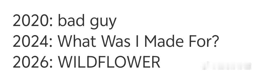 第68届格莱美【年度歌曲】:Billie Eilish「Wildflower」碧梨第三次拿下格莱美年度歌曲了恭喜🎉!