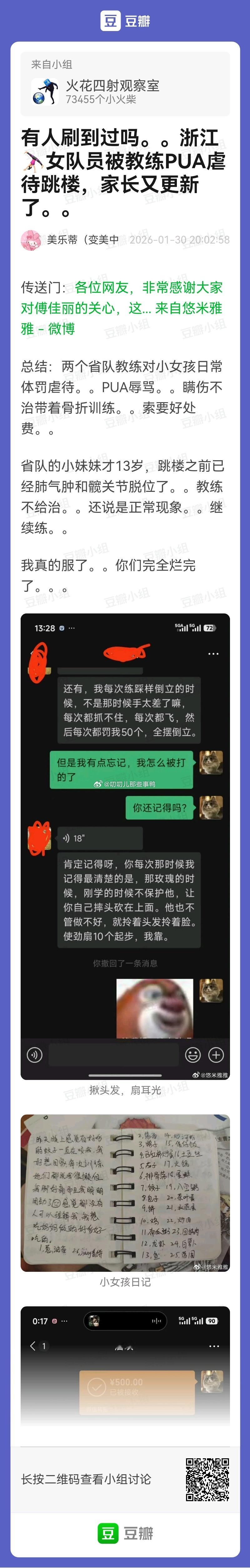 有人刷到过吗?浙江🤸🏻♀️女队员被教练PUA虐待跳楼,家长又更新了