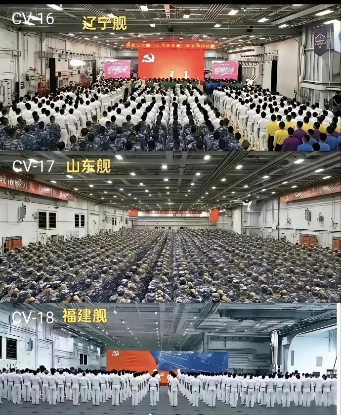 福建号航空母舰的机库必然是三艘航母中最大的,而且面积超过辽宁舰和山东舰一大截。 不过,图中并没有直观体现出福建号航空母舰机库之大,看起来山东舰的机库才是最大的,这是因为拍摄的角度、方位略有不同导致的。 福建号航空母舰仅仅固定翼舰载机的搭载量,就相当于辽宁舰和山东舰所有舰载机的数量,如果算上舰载直升机,福建号航空母舰搭载80架各型舰载机应该问题不大。