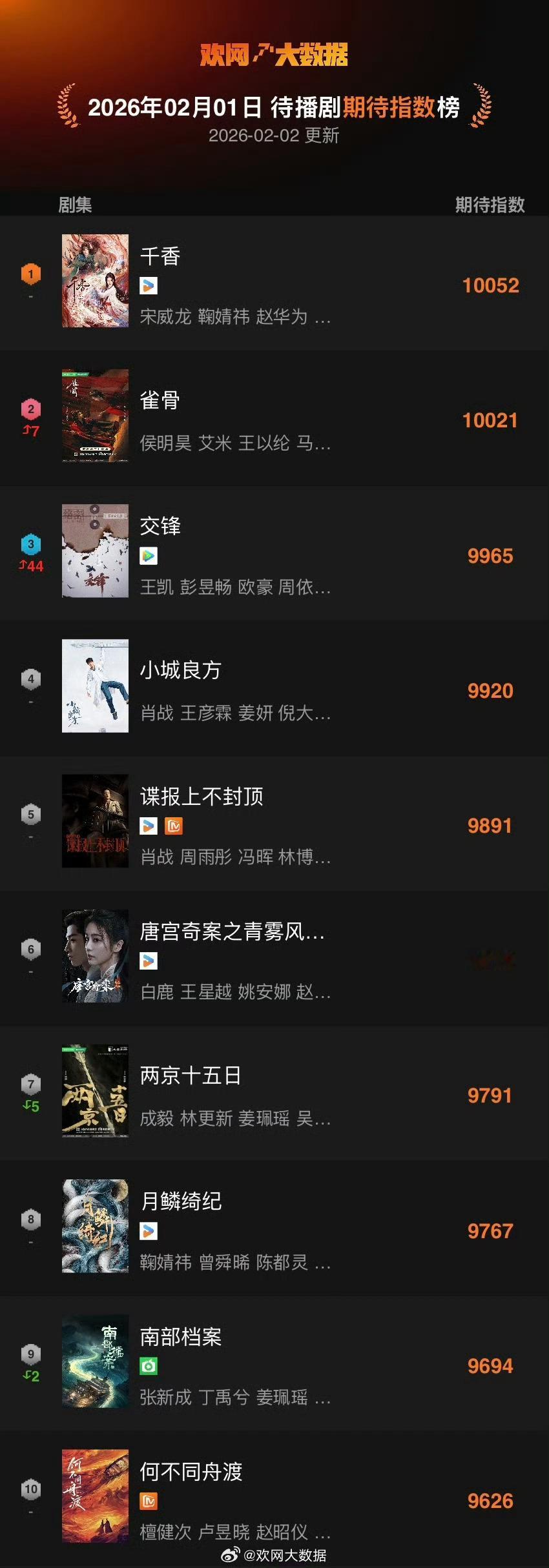 鞠婧祎待播剧《千香》《来战》《月鳞绮纪》《万花世界》期待指数,舆情热度全部登顶,一人扛四部,未播先火❗️