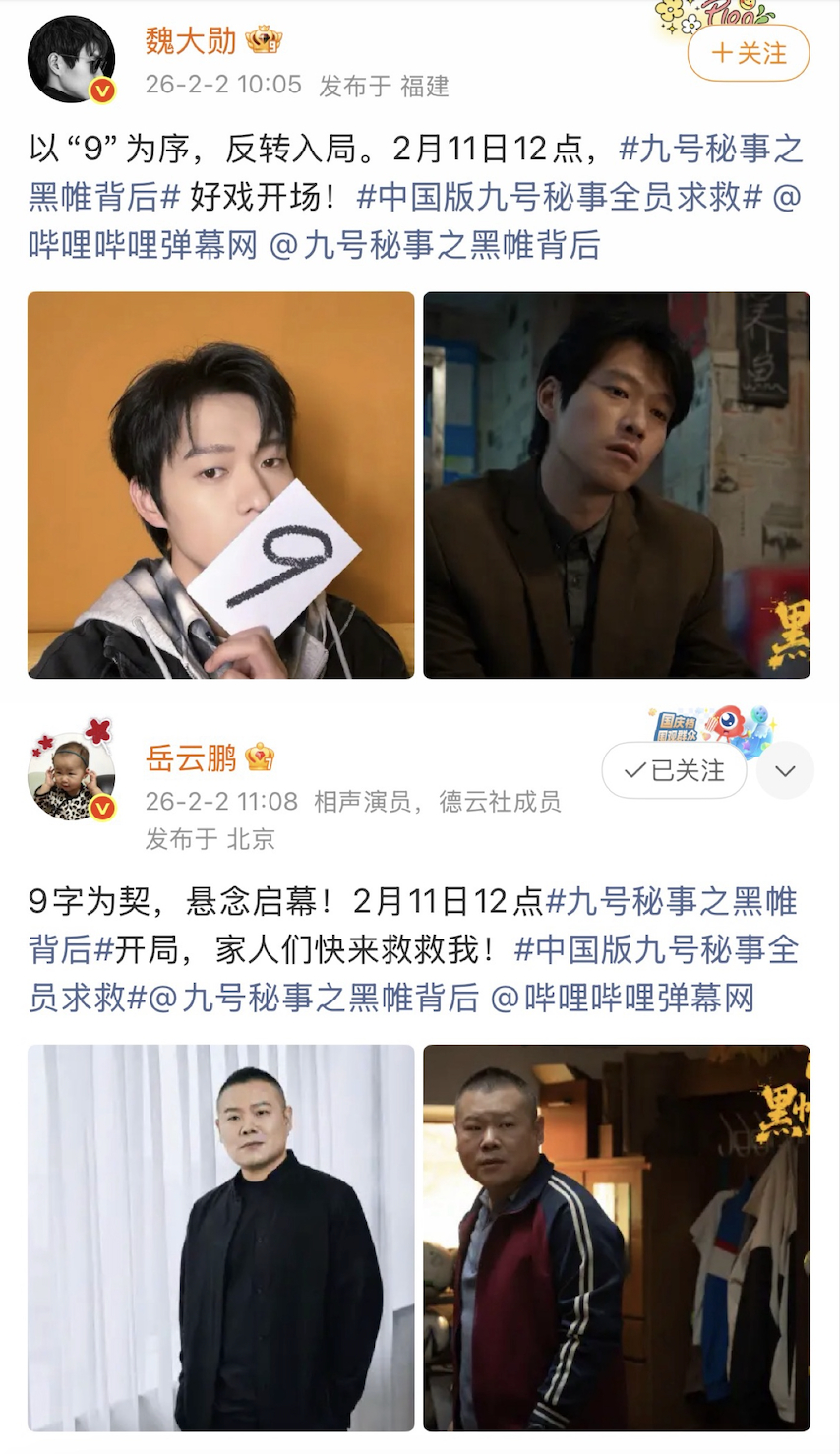 中国版九号秘事全员求救阵容官宣和预告片一样烧脑啊!一个数字9把悬念感直接拉爆——