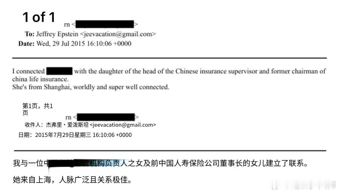 爱泼斯坦的邮件里终究还是出现了中国年轻女性。机翻我贴在原邮件下方了。时间是2012年和2015年,涉及到上海和成都。其中一位似乎对爱泼斯坦念念不忘(图3)?一声叹息。看来我这样精通英语但是不媚外的才是少数?爱泼斯坦别墅挂满与知名友人合影