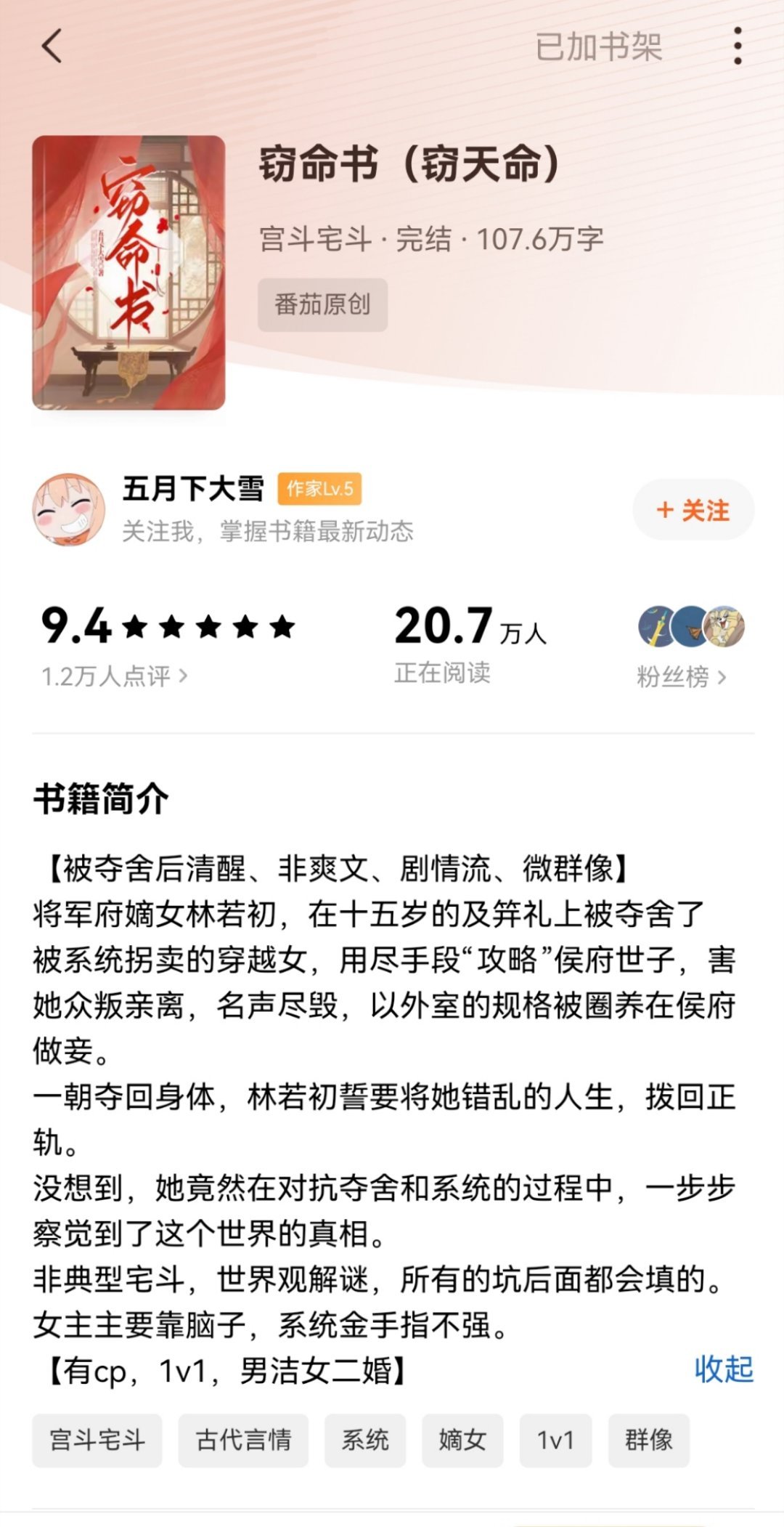 这小说,经常刷到夸好看的帖子,偶遇好多次了我都没勇气点开,因为感觉原女主被系统和穿越女害得也太惨了,把人家人生搅弄的一团糟再还给人家,让人很不爽。而且一个现代人攻略男人居然搞的自己众叛亲离千金大小姐不当去给人当妾,更让人不爽了。
