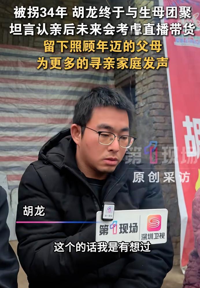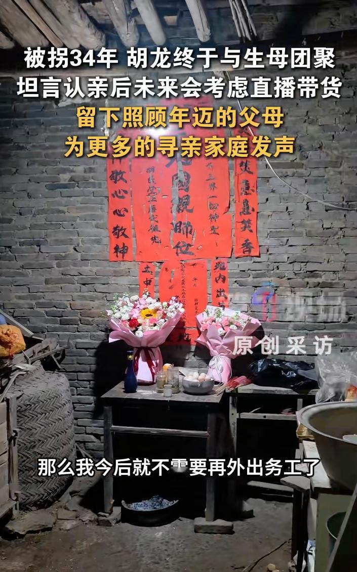 像苏牙子一样好的人 ,竟然还有。他就是胡龙。 胡龙小时候,人贩子来到他家,打晕了他妈妈和外婆,抢走了3个月的他,被拐34年后,他终于回家了。他的家里也像苏牙子家里一样,家徒四壁。 但是他不嫌弃,对这哭瞎眼的妈妈,说“你这只眼睛还能看见我吗?”带着哽咽,他回家后,照顾妈妈,带妈妈看病,带着妹妹的孩子去看病,给家里人做饭。 他也很真诚,他说不排斥直播带货,如果能靠直播带货为生,就不用去外地打工了。 希望他愈来愈好吧,家里条件如此差,父母又有病,妈妈眼睛又失明了,希望他的回来,能改变家庭困境,给他的爸妈创造最好的生活吧。