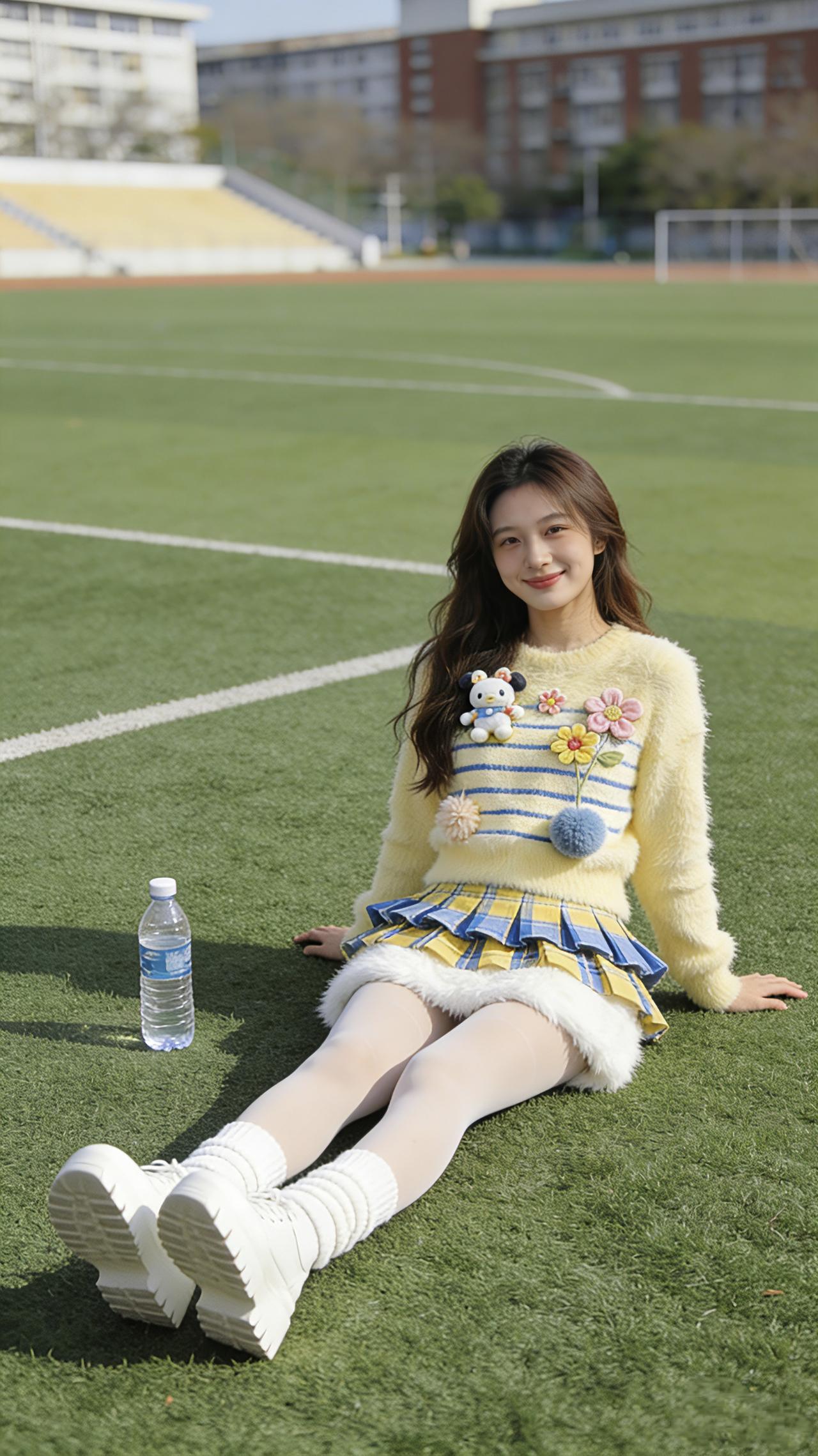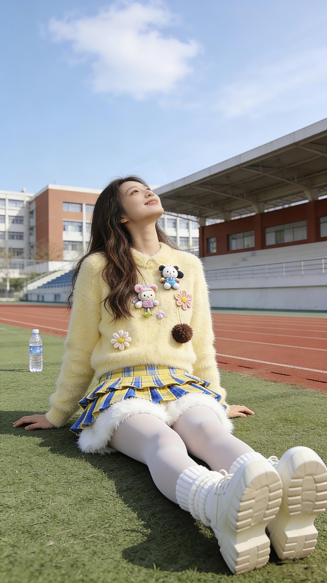 时光刚刚好,这身不显老。拍照姿势 操场拍照 校园回忆 秋冬穿搭