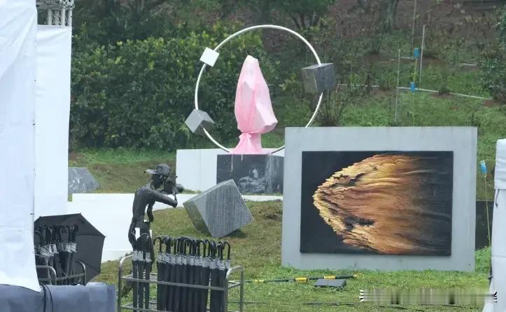 大S去世一周年!今天中午,S妈低调现身金宝山举行纪念雕像揭幕仪式,除了S妈之外,包括小S、具俊晔、艺人好友都会出席,这个雕像是由具俊晔亲自为大S设计的,坐落在金宝山碑林名人区。 S妈被工作人员扶着,走在最前面。一身黑衣裹着单薄的身子,口罩遮住大半张脸,露出的眼睛红着,步子慢得像踩在棉花上。她身后跟着小S,被许雅钧护着,头埋得低低的。 具俊晔走在侧边,身形比去年瘦了些,黑色外套的拉链拉到顶,像想把自己裹进沉默里。范玮琪夫妇也来了,远远站着,没敢靠前。 现场围了圈安保,挡着闻讯而来的媒体。大家都懂,这家人不想把思念变成供人围观的热闹。雕像坐落在碑林名人区,是具俊晔一手设计的。 深灰色大理石基座稳稳托着,像他这一年来没挪过的脚步。从大S走后,他就没回韩国,每天往金宝山跑,雷打不动。有人见过他清晨提着花来,也见过他傍晚坐在台阶上,对着墓碑说些什么,影子被夕阳拉得老长。 通往雕像的路藏着心思,9阶白色水泥台阶弯出S形,是大S的名字,也是他姓氏在韩语里的模样。两旁立着5块石头,3块在左,2块在右,还裹着白塑胶布,像怕被风吹疼似的。 这些细节,他没跟任何人商量,图纸画了又改,工人施工时他天天盯着,生怕哪里不合心意。仪式很简单,没有致辞,只有家人依次上前献花。 S妈摸着雕像的基座,手指抖得厉害,最后蹲下身,肩膀一抽一抽的。白发人送黑发人,这痛藏在骨头里,一年了,还是一碰就碎。小S上前抱了抱具俊晔,两人没说话,就那么站着。 曾经因为这段感情闹过的别扭,在生死面前早淡了。他用一年的陪伴证明,那些关于“图什么”的猜测有多刻薄。爱从来不是算计,是她走了,他还守着她留下的影子。 大S在世时,争议没断过。有人骂她任性,有人笑她恋爱脑,连带家人也被卷进是非里。可今天站在这里的人都清楚,她不过是敢爱敢恨,活得比谁都真。就像具俊晔设计的台阶,弯弯曲曲,却朝着光的方向。 风掀起塑胶布的一角,露出石头的纹路。听说这些石头是他从海边一块块挑的,说海浪冲过的,能留住念想。多傻的想法,可谁又能说这傻里没有深情? 仪式结束时,太阳从云里钻出来,照在S形台阶上,亮得有些晃眼。具俊晔最后一个走,转身前,他抬手摸了摸雕像的衣角,动作轻得像怕惊醒谁。 其实不用多说什么,这一年的风雨,他天天来陪她看;这雕像的每道纹路,都刻着“没忘记”。大S在那边应该知道,有人替她守着人间的烟火,把思念过成了日子。 离开的人或许已经释然,留下的人还在学着与回忆相处。就像那5块石头,总有一天会掀开塑胶布,迎着风,站成永恒的模样。