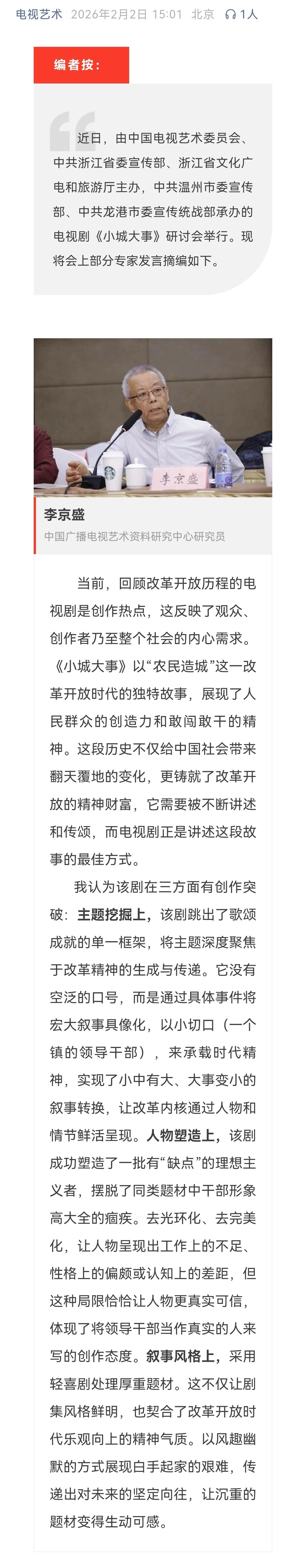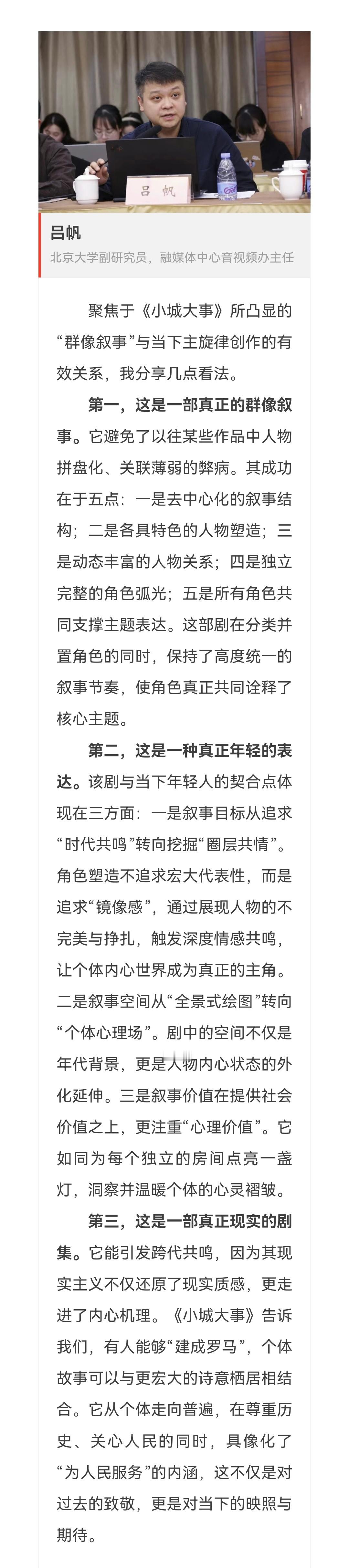 赵丽颖《小城大事》研讨会专家发言❗️小城大事所传递的价值观和精神形象,具有渗透式、慢热的影响力,能成为讨论时代发展的重要参照、