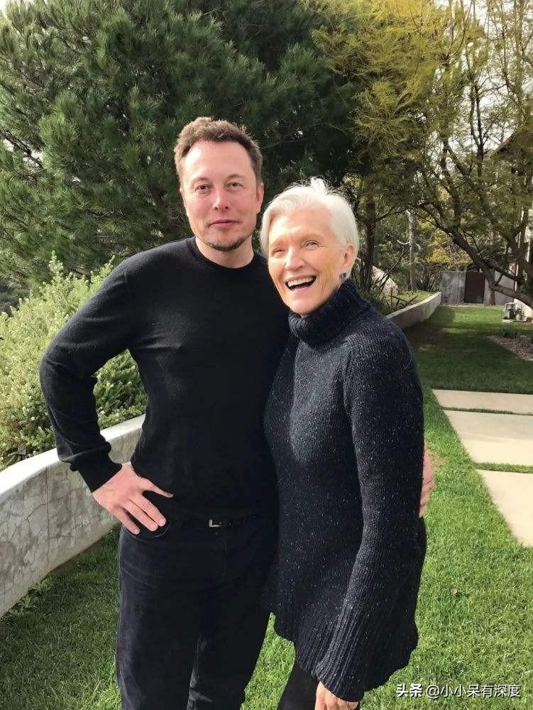 马斯克他的母亲笑得很自信,年老的她气场一点也不输邓文迪,生命力旺盛的女人。