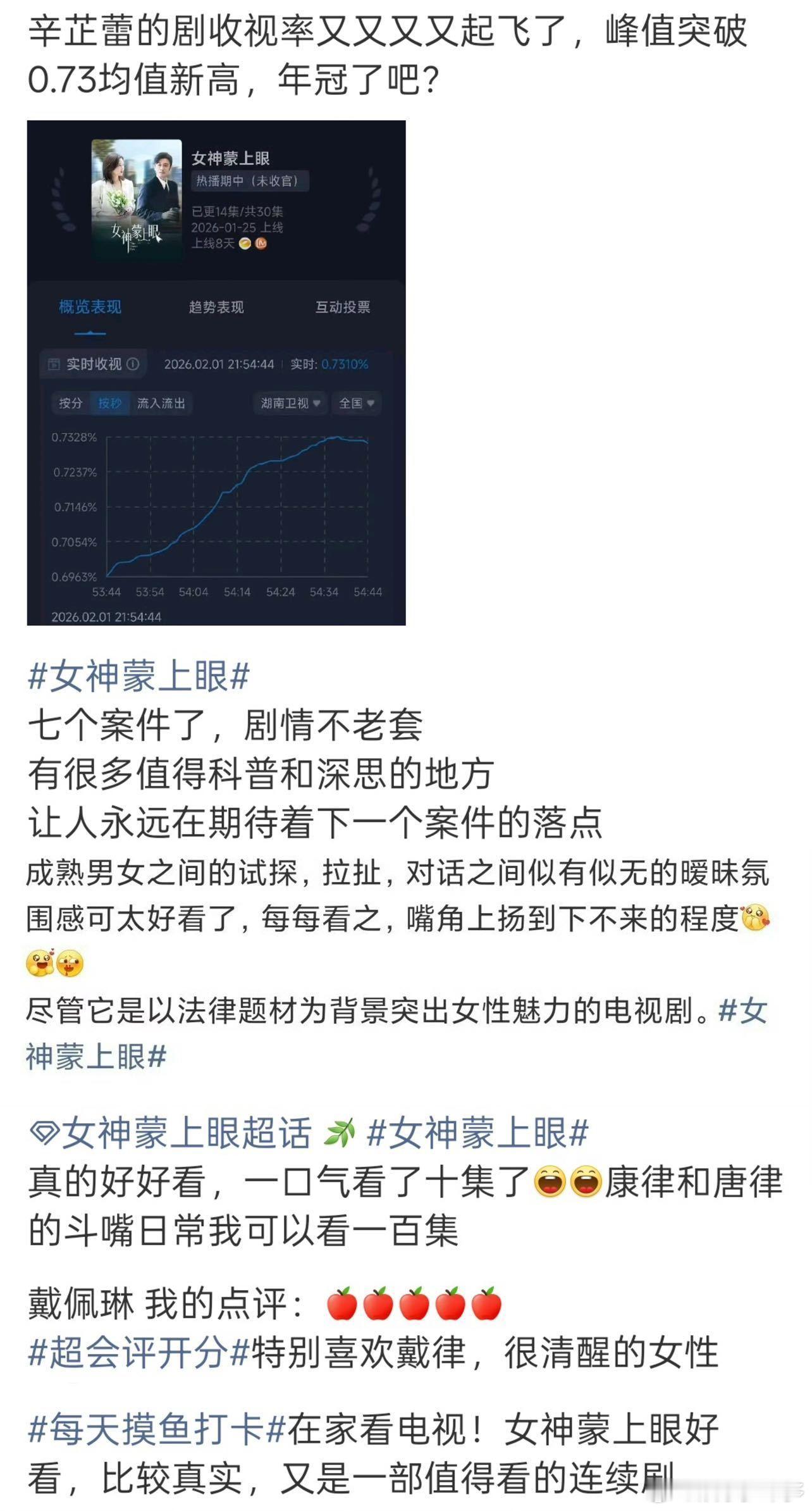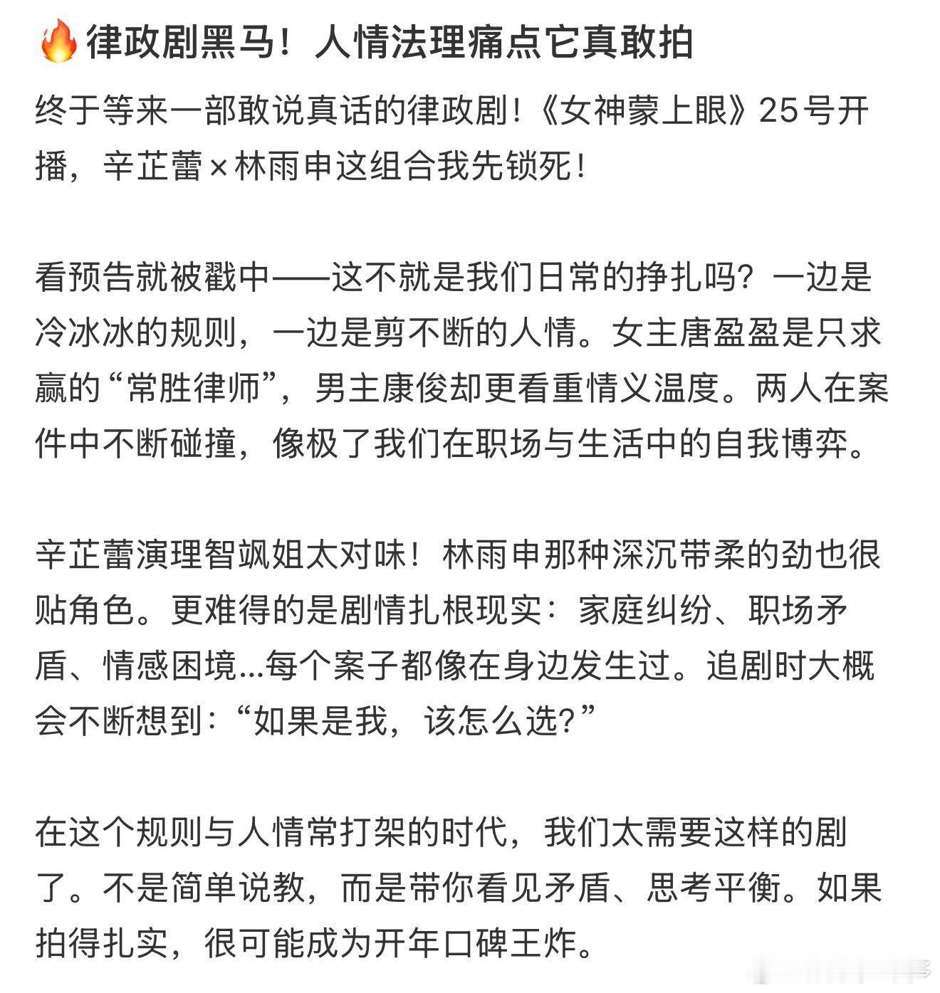 女神蒙上眼有效律政剧 律政剧就该这样拍!收视破0.73%,辛芷蕾飒爽律师圈粉,案件无悬浮套路,女性互助暖心,现实议题看得人深思~