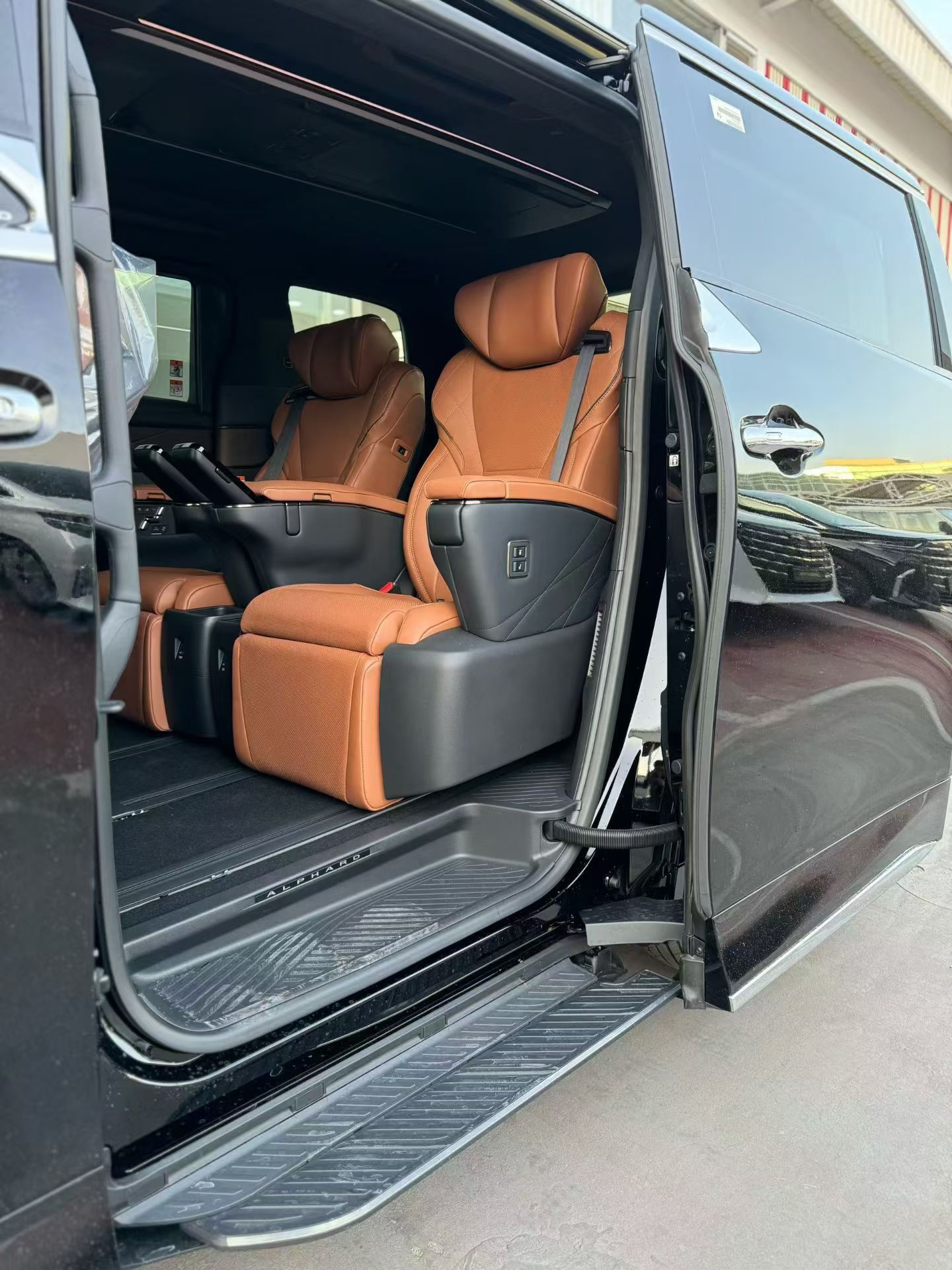 25款埃尔法黄金版臻享版实车这个车最大的特色首先是轮毂样式,其次多了电动踏板和水晶档把,但是溢价却挺高的