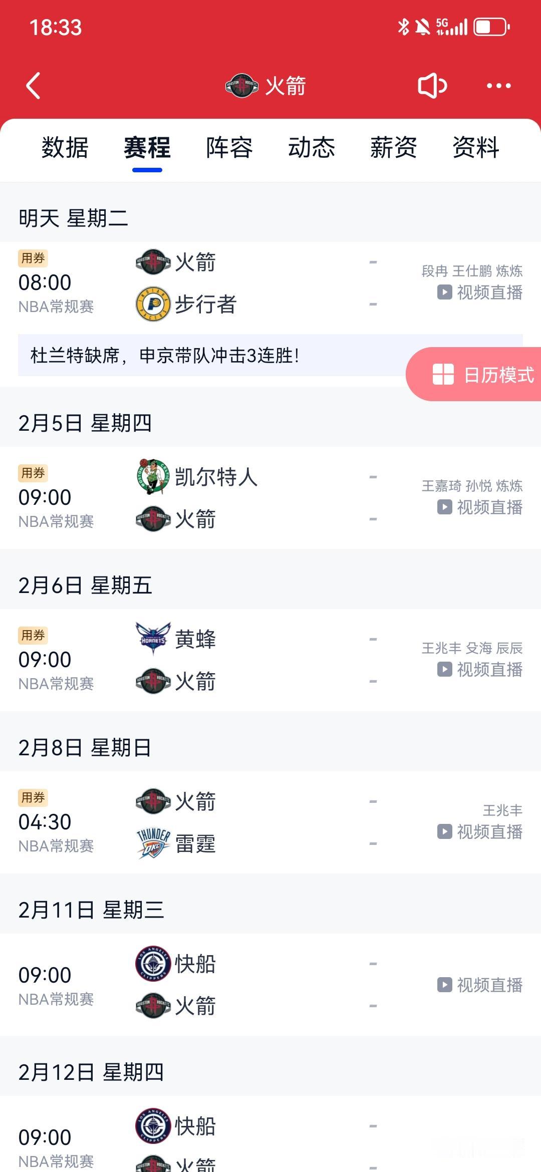 火箭凶险的全明星前夕 全明星赛前,火箭还有6场比赛,4主2客,客场面对去年总决赛的两队,步行者和雷霆,主场面对凯尔特人、黄蜂、2打快船。 步行者虽然在摆烂,但最近4场,3胜1负!客场还赢了雷霆!黄蜂最近10场,攻防都联盟第一!凯尔特人东部第二,快船最近一个半月,战绩联盟第一!客场打雷霆不用说了。 火箭虽然最近几场不错,但整体一直在做减法:一直没控卫,靠投抢生存,海王又报销了!申京又状态十分飘忽,投射水平越来越次!老杜消耗的够呛!从下场开始,老杜可能要歇几场。虽然以前老杜也停过两场,2连胜。但那时还在延续去年的打法,没那么依赖老杜,如今习惯了啃老,没了老杜,还行吗?6场能赢一半,就算成功。