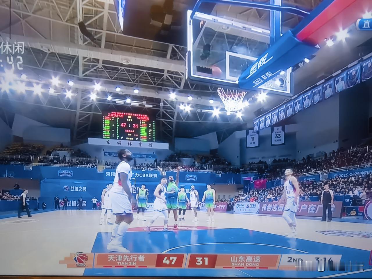 山东高速男篮春节前的最后一场比赛,没想到现场发生了这样的一幕!51:31,天津先行者领先山东高速20分! 天津先行者的外线命中率达到了50%!两节比赛仅有六人轮换,就靠一套阵容把山东高速男篮打垮了! 山东高速男篮的三个外援加起来不如天津一个本土球员的得分!这样的凝聚力,这样的战斗力,这样的防守强度,拿什么在季后赛去和强队对抗? 在天津队的主场,山东高速男篮落后20多分,想要拿下这场比赛很难了! 克里斯只要有了抱怨,就不会再去防守,明年第一个裁掉的外援就是克里斯!他好像这个裁判是专门为他准备的,我就纳闷了,这样的人怎么会走在篮球场上? 谢志杰作为一个后卫,无论有机会没机会,第一时间不传球,总是先带下球,绝对的不会打出快攻,这样的组织能力没有人来指导吗? 58比36,天津队在主场开始玩起了花样式篮球!这是山东高速男篮的耻辱!