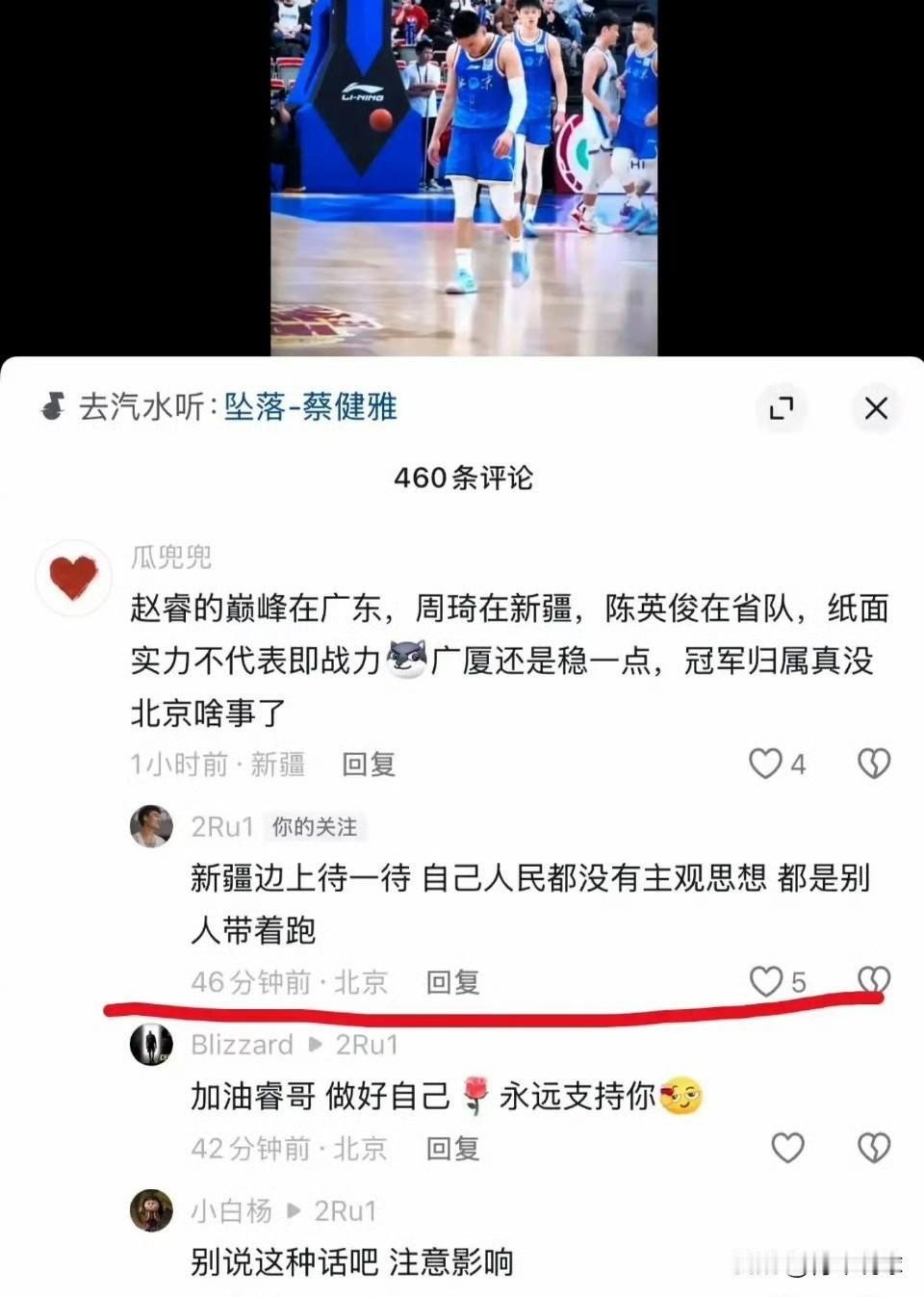 赵睿惹众怒了啊! 今天晚上没有北京男篮的比赛,但CBA其他球队比赛的直播间依旧被赵睿霸榜,“封杀赵睿”“严惩赵睿”“禁赛赵睿”等等口号在直播间不断的刷屏,引发热议。很明显,赵睿在社交媒体上怒怼球迷的言论引起了众怒,尤其是让新疆球迷非常愤怒。赵睿还是少在社交媒体上“对线”球迷,避免祸从口出,影响了职业生涯。
