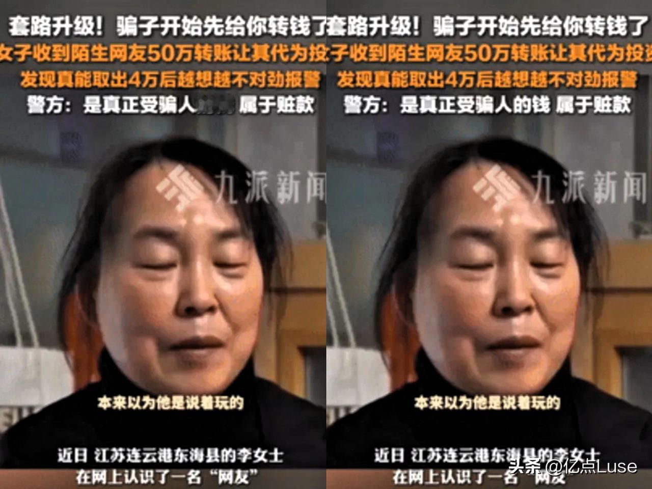 防不胜防!江苏,骗子给女子转50万“投资”,她到银行取出40000元,发现竟是真钱!万万没想到,女子随后举动让骗子哭晕!网友:这好事咋不找我? 最近在江苏连云港,李女士(化名)干了件让全网直呼“牛”的事,堪称“反诈界天花板”。 事情是这样,她接到陌生电话,对方称有“内部投资渠道”,直接往她账户转50万作“启动资金”,让她再添20万,半个月就能翻倍。 李女士半信半疑去银行取4万现金,确认钱是真的后,操作让骗子懵了,最后骗子估计得哭晕。 故事源于一个陌生电话,当时李女士在家收拾卫生,手机响了,对方自称“权威投资平台”客服,热情专业推销“专属理财产品”:“姐,这产品零风险高回报,投1万一个月赚3000,内部名额就剩一个!” 李女士常看反诈宣传,一听就觉得是骗子,想挂电话,对方却称先转50万体验金,验证收益真假再决定,不用她掏钱。李女士犯嘀咕:没见过主动送钱的,这啥套路? 挂电话后李女士没在意,半小时后手机银行到账50万。她反复核对,确认是陌生账户转来,彻底懵了:难道真有馅饼? 为搞清情况,李女士到附近银行,跟柜员说明情况,取4万现金。 没想到柜员真把钱给了她,钱是真的!李女士没高兴,反而更警惕:“骗子用50万当诱饵,想钓我大钱!” 果然,刚取完钱骗子电话就来了,急切地说:“姐,钱收到了吧?把50万投进来,一周赚3万,本金收益一起转。” 李女士忍着笑,假装动心:“取4万看了是真钱,但50万数额大,我跟家人商量,确认平台正规性。” 骗子觉得有戏,发伪造“资质证明”,还拼命画饼:“姐抓紧,错过没机会,凑钱,名额给你留着!” 挂电话后,李女士立刻拨通110,带取款凭证和聊天记录去派出所。 民警惊讶,告知这是新型诈骗套路:骗子用赃款当“诱饵”,等你投钱就拉黑,既能骗钱又能洗白赃款。 骗子想钓“大鱼”,却碰上“硬骨头”,没骗到钱还进了局子。民警表扬李女士:“很多人见钱到账就放松,最后血本无归。你能清醒配合破案,立大功!” 这事网上炸开了锅,有人说:“反杀漂亮,骗子偷鸡不成蚀把米。”有人开玩笑:“求骗子联系方式,我也体验取4万真钱。” 还有人提醒:“陌生大额转账要小心,可能是洗钱陷阱,私自花有法律风险。” 其实骗子套路核心是利用贪念,先抛“诱饵”让你信任,等你投钱就跑路。 李女士的经历证明:天上不会掉馅饼,别被甜头冲昏头脑。 民警借机会提醒:遇到“零风险、高回报”投资宣传,哪怕真有钱进账,也要第一时间报警。 守住钱袋子,不贪小便宜,才是防诈根本。毕竟,你以为的“意外之财”,可能是万劫不复的大坑。 对此你怎么看? 信源:九派新闻