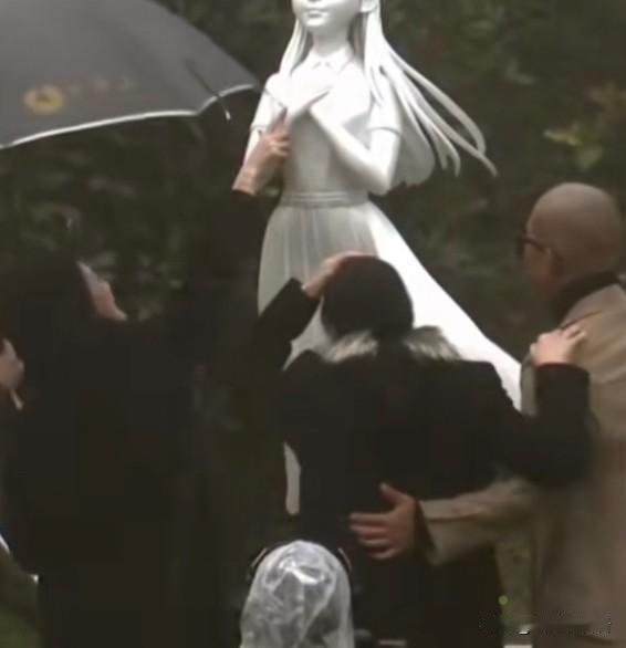 大S一周年,各位好友在大S雕像前微笑合照,像是又一次的聚会一样,S妈很是悲伤,对女儿恋恋不舍,轻轻抚摸女儿雕像,具俊晔也略显难色,S妈过去安慰并拍拍女婿的肩膀,女婿也扶着岳母后背,轻轻安慰,S妈伤心不已和女婿拥抱,伤心哭泣,淋着雨的S妈时不时摸摸淋湿的头发,两人互相扶持凝视着大S雕像,太不舍。