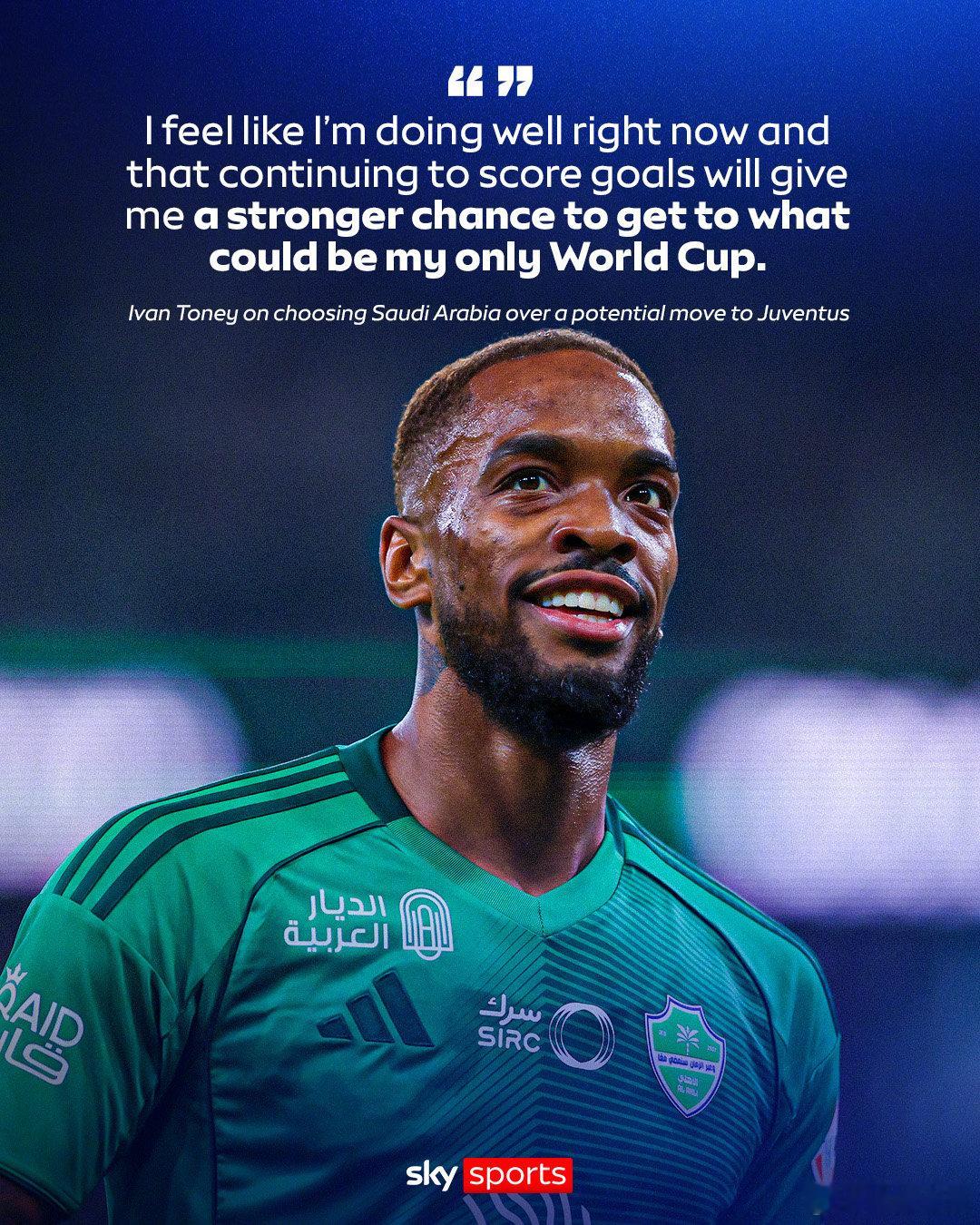 【】天空体育:吉达国民前锋伊万-托尼拒绝了尤文图斯和两家英超俱乐部的邀约,他在沙特过得非常舒心,并且出场72次,打入56球,效率很高,他相信自己会有很大机会入选英格兰的世界杯名单,这也是29岁的他唯一能参加世界杯的机会。英超