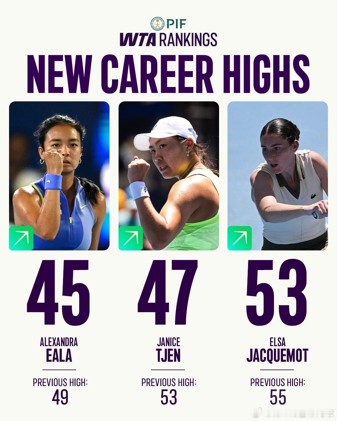 WTA最新排名公布 达到新高的新生代