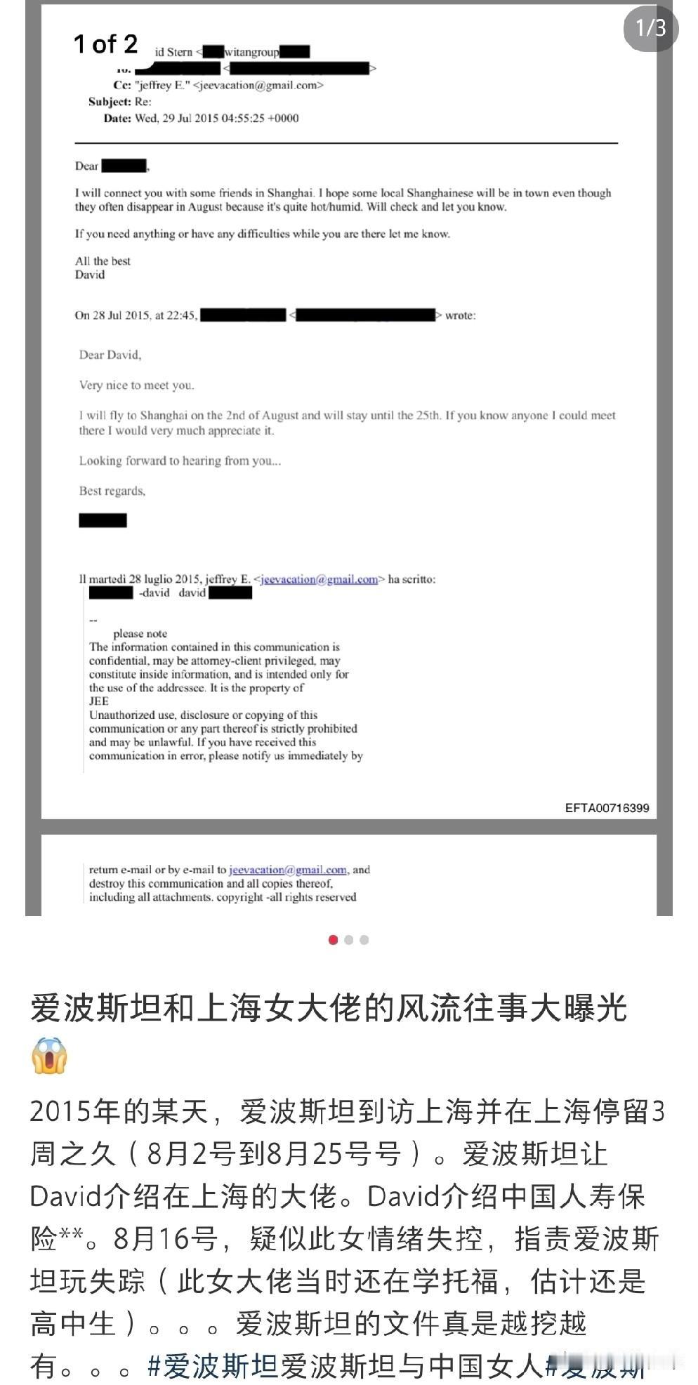 爱泼斯坦的瓜吃到自己家人头上了?! 爱泼斯坦案最新文件中提及中国女性信息,披露文件里也没有包含具体施暴者的姓名。可是有一封信中提到了一个女性的背景!不想在8下去了,她也是一个受害者。希望她们能早日做到涅槃重生🙏🙏🙏