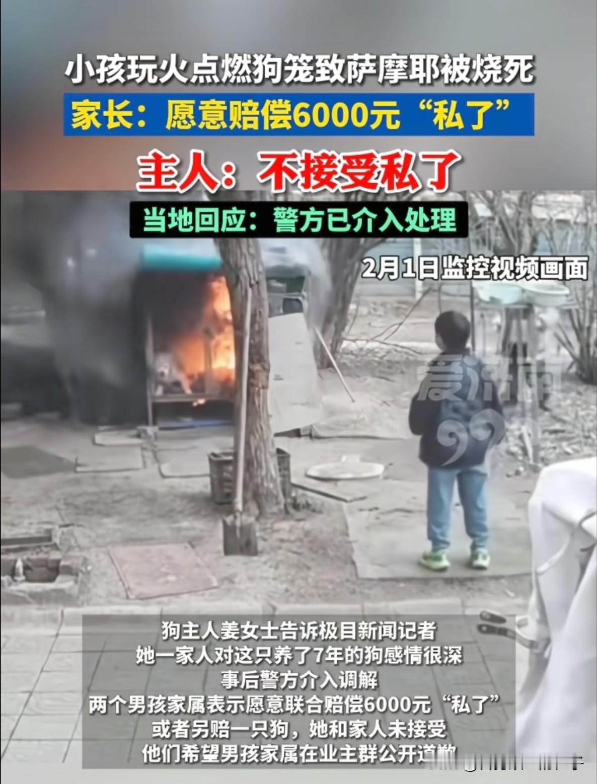 江苏两小孩玩火点燃狗棚这事,其实和白衣服男孩没啥关系,主要是黑衣的太坏了,拿着烟花追公鸡,又故意把烟花丢进狗棚才导致着火,看到狗棚燃起来后就直接跑开了! 而白衣服男孩则大喊着火了,呼唤大人来救火,然后又试图用铁锹灭火,也能看得两个男孩本质上还是有区别的,虽然都有点调皮,但黑衣服真的有点坏。 事后,黑衣服男孩的家长去和狗主协商赔偿的事,坐在椅子上,双手环抱,翘个二郎腿,哪里有一点道歉的样子,连在小区群里道个歉都不愿意,估计还不知道自己小孩已经涉嫌纵火了。 就想赔6000元了事,这样的态度换谁也不会接受,支持狗主人起诉!