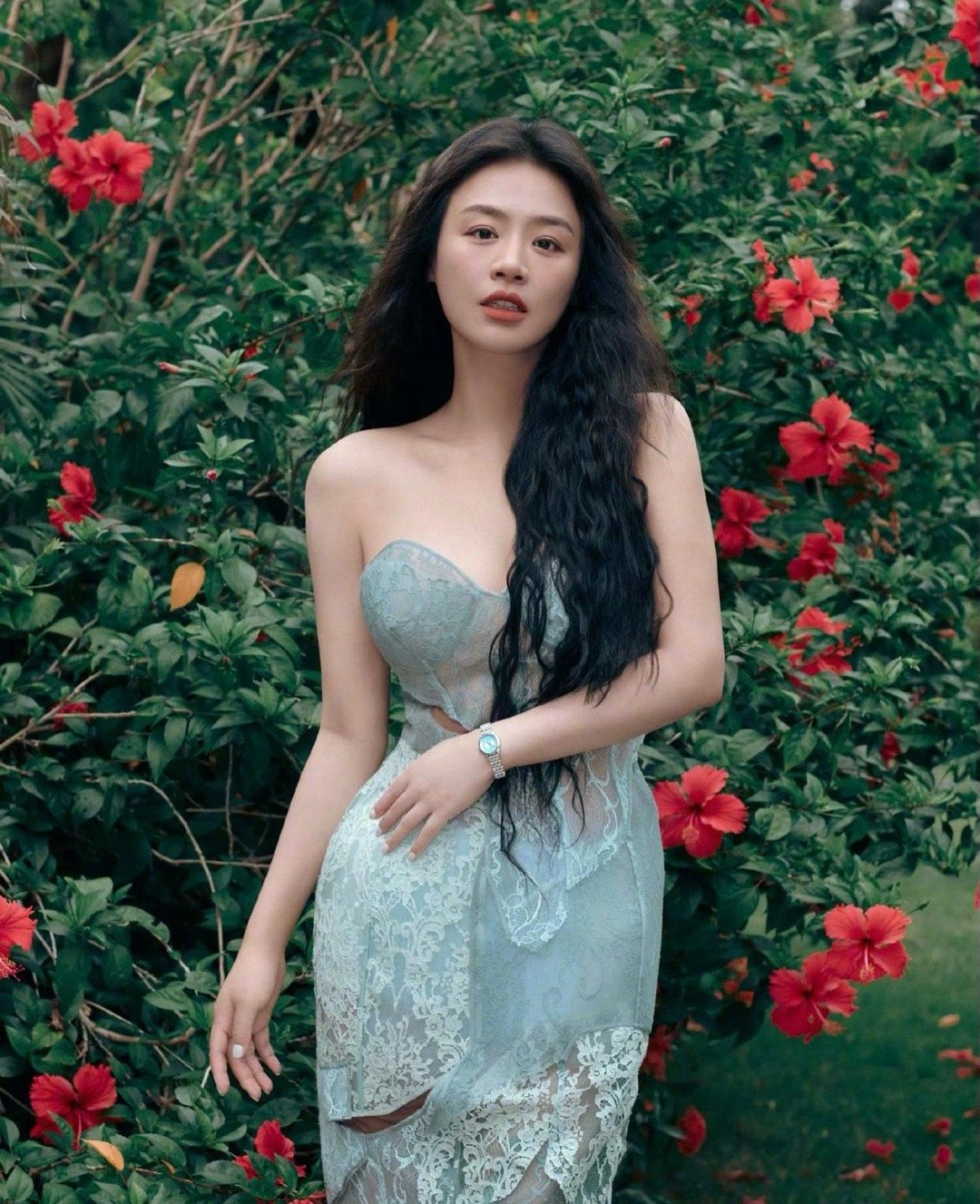 看走眼了,差点以为马思纯的裙子上面被划了两道口子。