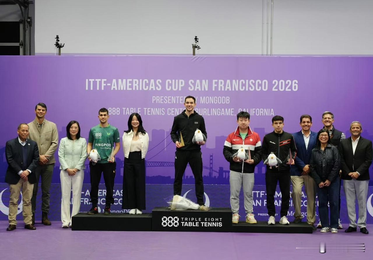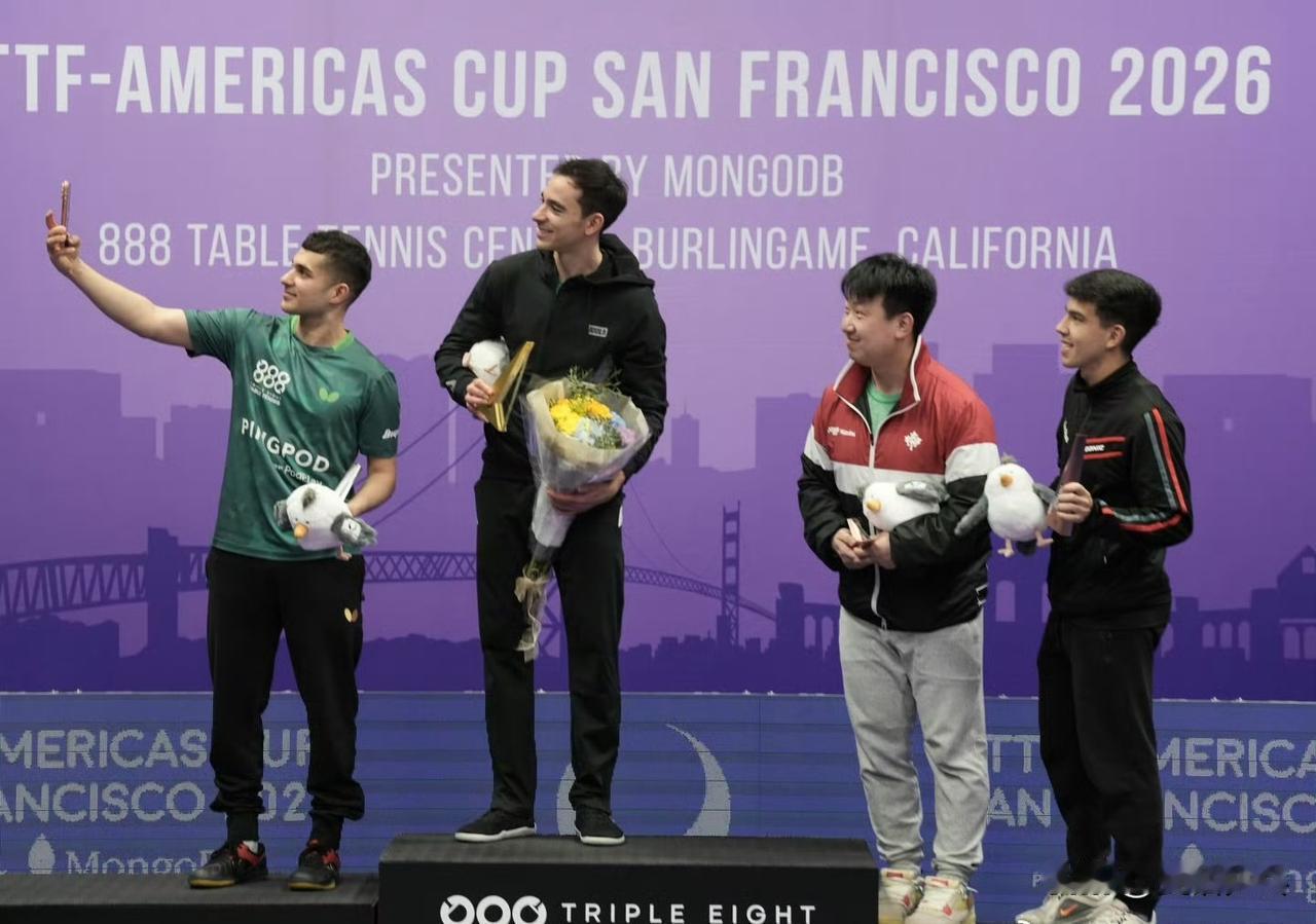 ITTF美洲杯2026 男单颁奖仪式 冠军:🥇雨果·卡尔德拉诺🇧🇷 亚军:🥈卡纳克·贾哈🇺🇸 四强:🥉王臻🇨🇦 🥉奥拉西奥·西富恩特斯🇦🇷 2026.2.1