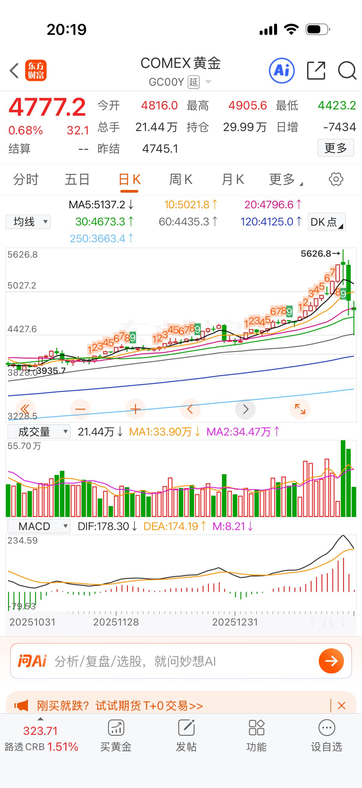 黄金4400-4900剧烈震荡。今天也算是见历史了。