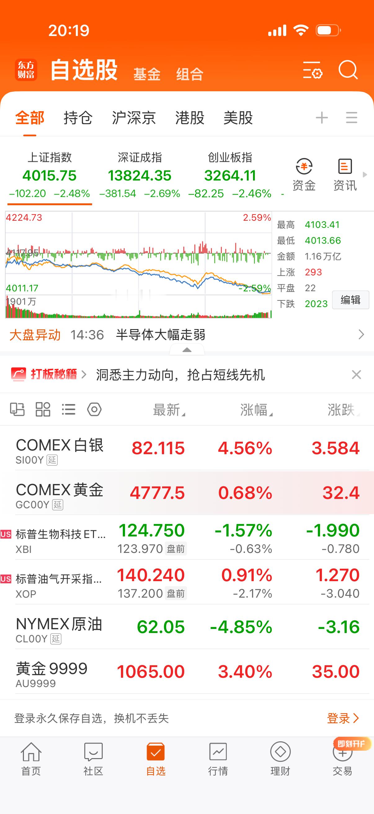 黄金跌两天把A股吓死,它也是奇怪啥大跌都跟着跌,涨的时候不一定跟。