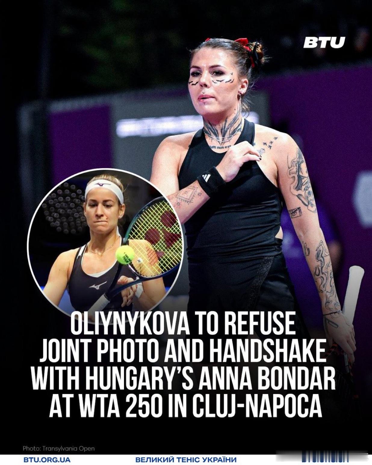 奥利尼科娃🇺🇦拒绝与🇭🇺 邦达尔 在克卢日-纳波卡举行的 WTA 250 比赛中合影并握手