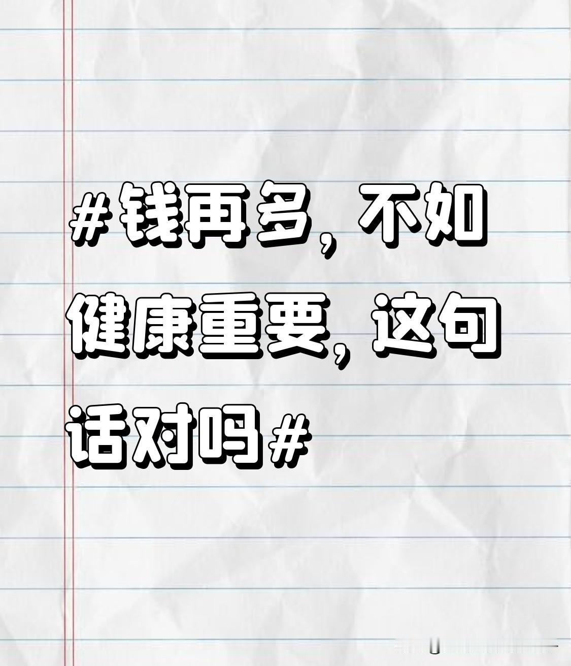 “钱再多,不如健康重要”,这话太对了。就说32岁的周明,作为大厂技术骨干年薪百万。为了工作连续半年凌晨三点前不睡,咖啡泡面成日常,体检问题一堆也不在意。直到加班晕倒进ICU,被诊断急性胰腺炎,差点丢了命。 躺在病床上,他看着卡里的钱,却买不来安稳睡眠和正常饮食,父母也只求他活着。健康就像那个1,财富等都是后面的0,没了健康,再多钱都是空。当然,钱也能为健康提供保障,但不能本末倒置。别等失去健康,才明白它的珍贵。