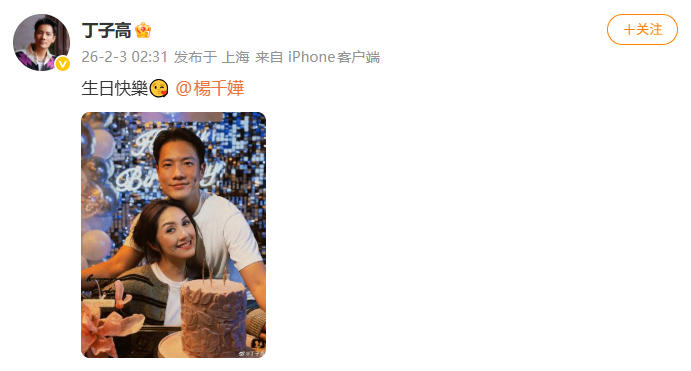 丁子高晒合照为杨千嬅庆生 丁子高晒合照为杨千嬅庆生,“生日快樂😘”