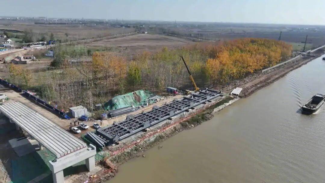 响水境内的桥梁施工现场一派如火如荼的景象。目前,长达95米的月港大桥主跨已基本建成,宛若一条巨龙静卧在通榆河之上,弯月形系杆拱桥也即将完成,计划近期开展系杆拱桥吊装作业。项目总工程师赵敏介绍:“我们已完成劲性骨架拼装,下个月启动吊装主跨,12月底将进行预制中横梁、桥面板的铺装工作。”(采写:南都N视频记者 韦娟明)