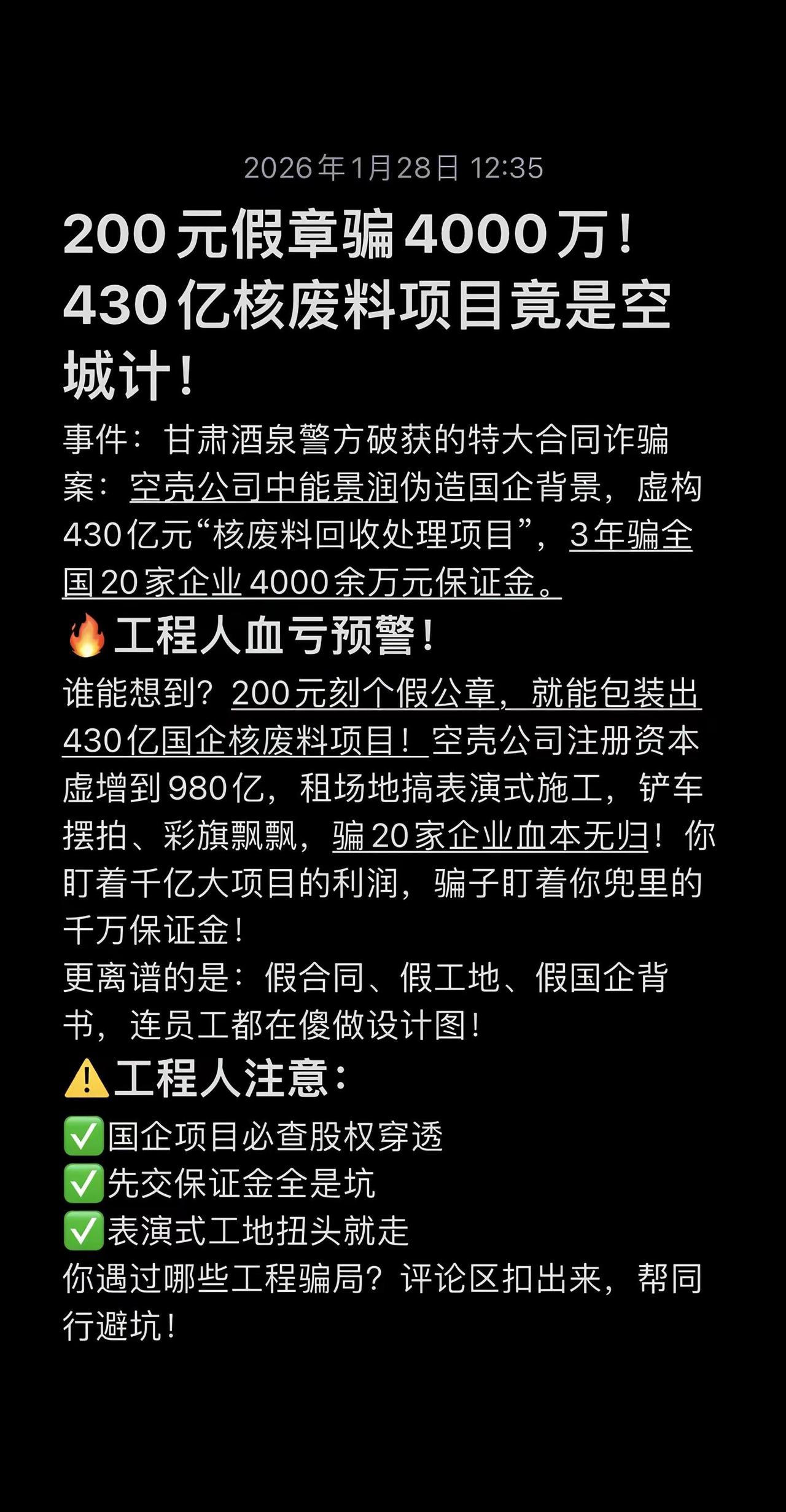 工程骗局天花板!200元撬动4000万。离谱到炸!工程骗局天花板来了!200元假章,包装430亿项目,骗走4000万保证金!建筑工程 工程骗局揭秘 工程人 建筑人必看