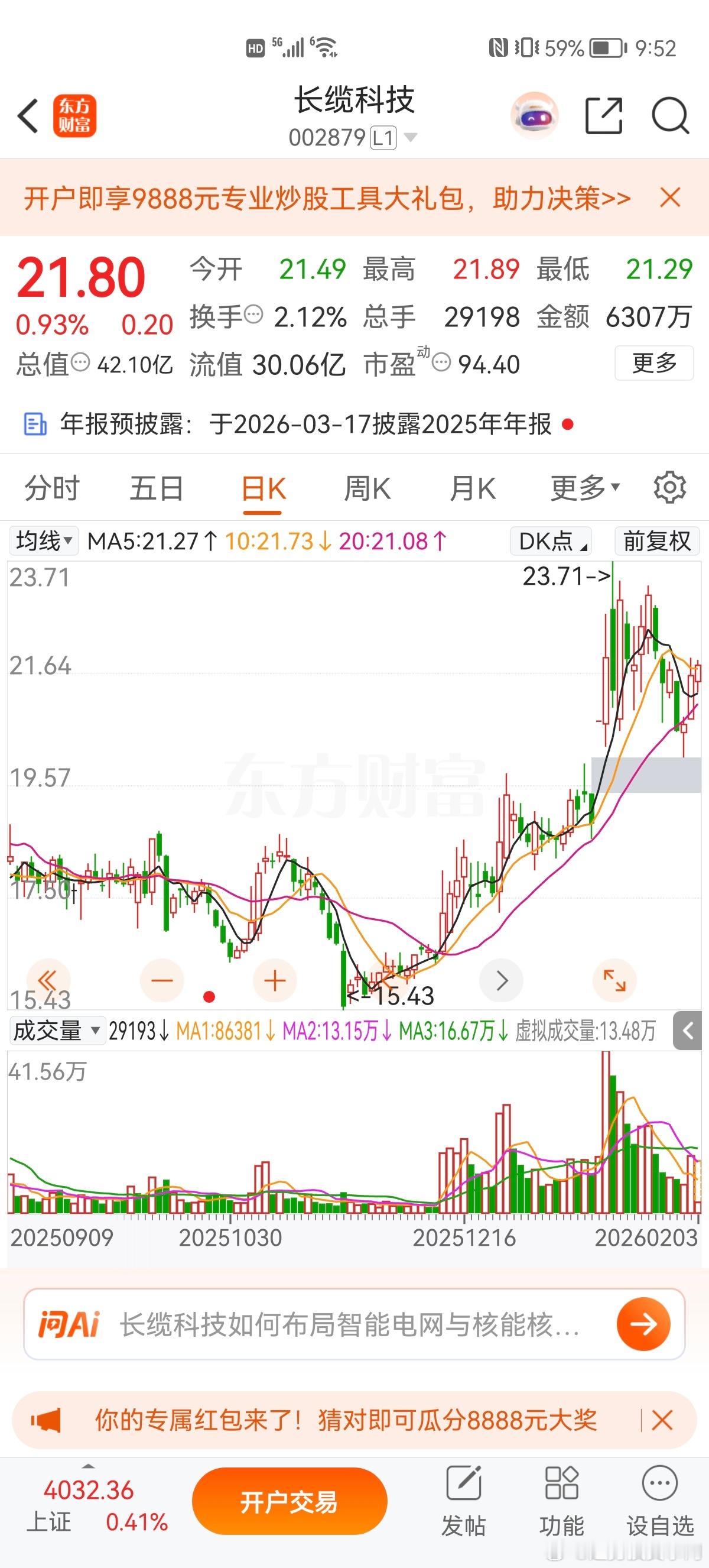 大家可以关注一下$长缆科技sz002879$