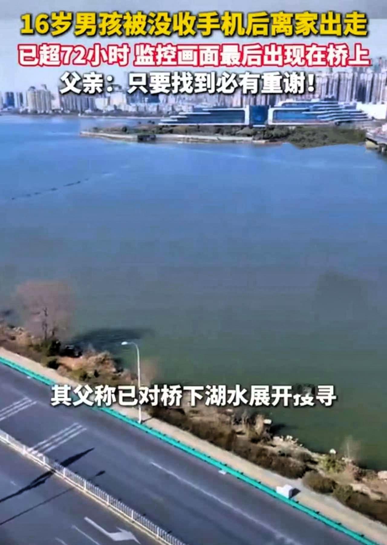 2026年1月26日凌晨4点57分,武汉南湖大桥观景台,16岁高中生李榕烨把自己“藏”进了监控盲区 事发的起因其实很常见,孩子通宵刷手机被父母没收了设备,本是家长出于管教的初衷,却没想到成了矛盾的导火索。青春期的孩子没吵没闹,只用沉默对抗,不吃饭不交流,最后趁家人熟睡悄悄出走,这背后藏着的其实是孩子没被看见的情绪,还有亲子间沟通的缺位。 武汉当时又下雨又降温,天气冷得刺骨,孩子就穿了一身单衣,1.72米的身高、戴着白框眼镜,这样的条件下在外漂泊,家人和警方的焦急可想而知。无人机搜寻、水上救援队排查水域,孩子父亲一遍遍念叨着孩子的特征,全网都在盼着能有孩子的消息。 其实这事儿也给所有家长提了个醒,青春期的孩子面对学业压力,本就容易有情绪波动,简单的硬刚式管教,往往会把孩子推得更远。没收手机的初衷是好的,但少了沟通和疏导,就容易让孩子觉得自己的情绪不被理解,最后用极端的方式表达反抗。 青春期从不是孩子一个人的成长,更需要家长的耐心和包容,别用“为你好”代替倾听,别用管控代替沟通。真心希望李榕烨能被尽快找到,平安回到家人身边,也希望每个家庭都能学会好好和孩子说话,守住孩子的情绪底线。