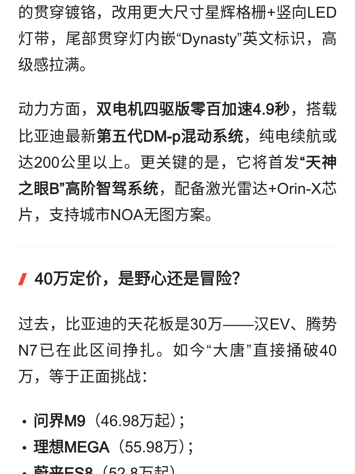 比亚迪“大唐”无伪谍照曝光!车长5.3米、4.9秒破百、售价超40万
