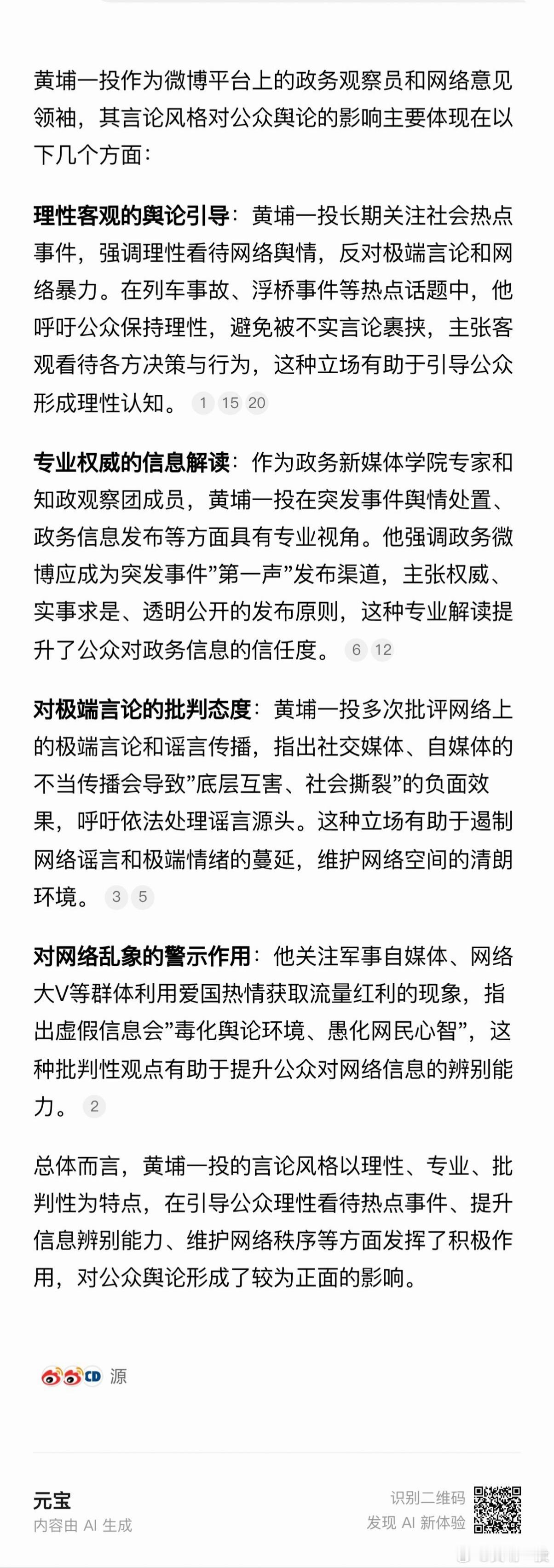 对本博这一年网络言论的总结评价。觉得元宝回答还是认真的。