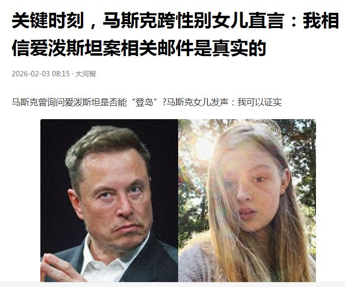 又一出罗生门事件出现了。 马斯克的大女儿(曾经的大儿子)爆料说她(他)爹去过萝莉岛,那些邮件说的事情是真实的。 但是马斯克自己是极力为自己狡辩说自己和爱泼斯坦和往来很少,从没有去过那个地方。 而且自己是极力推动公开爱泼斯坦名单的人,现在所有对他的指控都是对他的敌人对他名誉的抹黑。 大家相信谁?[抠鼻][抠鼻] 我选择相信爱泼斯坦。[憨笑] 点右上角关注我,我们一起去看这个魔幻的世界