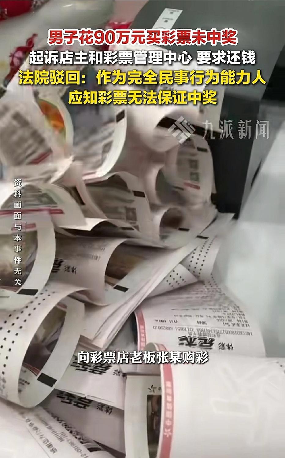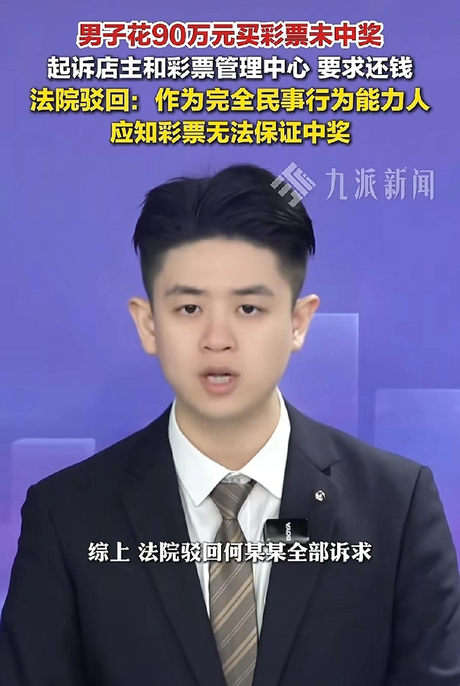 安徽合肥,男子一个月内花90万买彩票,不料,一直没有中奖,男子直接起诉彩票中心,称店老板卖彩票违法,要求老板退90万和利息,法院的判决让男子傻眼了。 男子何某某经常刷朋友圈,他刷到彩票店主张某朋友圈里的彩民中奖信息。 他心里动了贪念,想着靠买彩票搏一把大额收益,从此开始了他近一个月的疯狂购彩之路。 何某某主动联系张某,张某告诉他可以不用亲自到店,只需要在微信上把想好的彩票号码、玩法和投注金额发过来。 张某就在线下实体彩票店完成出票,再把彩票照片拍给何某某确认,购彩款则由何某某直接转到张某的银行账户,全程沟通转账都在线上完成。 起初何某某只是小额投注,可一次次开奖落空,他却总觉得下一次就能中,投注金额越来越大,短短三十天里,累计砸进去的钱竟高达90万元。 而这期间,张某见何某某投注数额不断飙升,始终尽着提醒义务。 每次大额出票前,都会把《大额购彩风险告知书》和《大额度预约通知单》的二维码发给他,何某某前后7次扫码填写并确认。 张某还在微信里反复叮嘱他“理性投注,购彩需谨慎,别盲目大额投入”。 但被一夜暴富执念冲昏头的何某某,根本没把这些提醒放在心上,依旧我行我素地砸钱。 可幸运之神从未眷顾他,90万元的彩票全部开奖后,无一中奖,所有投入打了水漂。 面对这笔巨额损失,何某某非但没反思自己的非理性行为,反而心生怨怼,将矛头指向了张某和当地彩票管理中心。 他认为,张某通过微信沟通、收款、出票的行为,属于违法的网络售彩,且对方发的中奖信息是刻意引导他大额购彩,彩票管理中心也未尽到监管责任。 于是,何某某一纸诉状将二人告上法院,要求确认双方的购彩合同无效,判令张某和彩票管理中心返还90万购彩款,还要支付相应的利息。 庭审中,何某某坚称自己是被诱导、被违法售彩所害。 《彩票管理条例》第16条规定,彩票销售场所应按统一要求设置销售标识、张贴警示标语,代销者需引导理性购彩、提示射幸风险,属法定告知义务 。 可张某拿出了完整的微信聊天记录、何某某多次扫码确认风险告知的凭证,彩票管理中心也举证证明与张某仅为代销关系,且已对张某完成专业培训,尽到了管理职责。 法院审理后,逐一驳回了何某某的主张,明确微信仅为双方沟通渠道,张某线下实体出票、购彩款依规转入指定账户的行为,并非违法网络售彩,购彩合同合法有效。 同时张某已充分履行风险告知义务,现有证据无法证明其存在诱导购彩行为。 而何某某作为完全民事行为能力人,理应知晓彩票中奖的偶然性,不能将未中奖的结果认定为“损失”。 最终,法院依法驳回了何某某的全部诉讼请求。 听到判决结果的那一刻,何某某彻底傻眼,他怎么也没想到,自己抱着讨回损失的想法起诉,最后却要为自己的非理性行为承担全部后果,90万元的投入终究是打了水漂。 绝大多数网友力挺法院的判决,直言何某某的行为是“愿赌不服输”,缺乏成年人最基本的责任意识。 有网友犀利吐槽:“90万够付一套房首付,偏要赌千万分之一的中奖概率,输了就怪别人,典型的成年巨婴!” 不少网友调侃其双标逻辑:“中奖了会分彩票店一分钱吗?输了就要求退款,天下哪有这等好事。” 还有网友直指其行为浪费司法资源:“明知道彩票中奖靠运气,还拿着风险告知的凭证起诉,纯属无理取闹。”