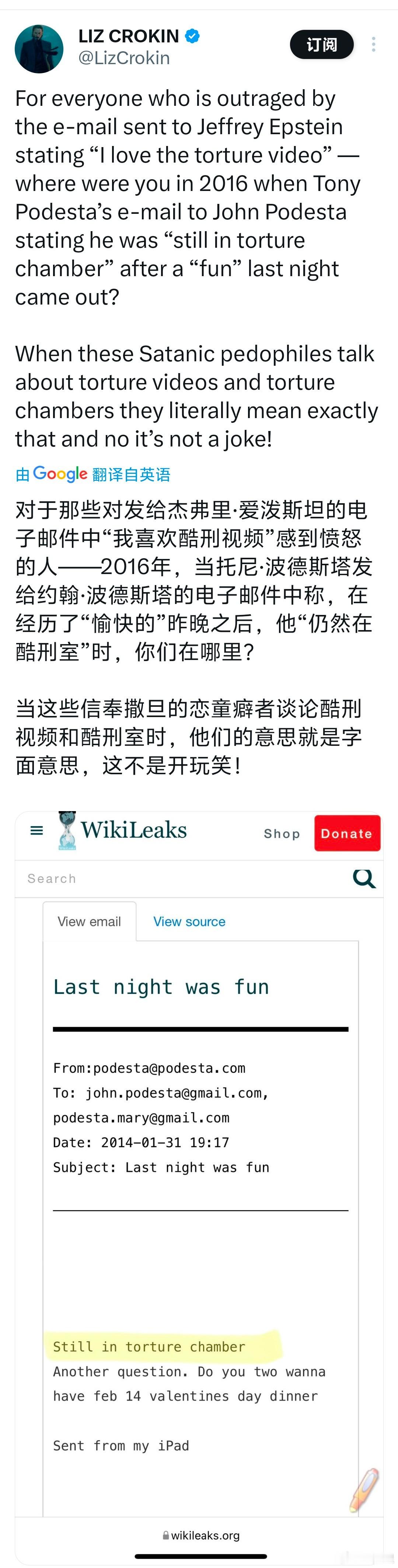 Tony是美国说客,以创立波德斯塔集团而闻名,这也是个恋童癖变态,喜欢看孩子受到酷刑,档案中曝光了一些邮件对话,图9。